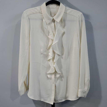 Long Sleeve Ruffle Button Up Blouse, Chico's Size 1 â