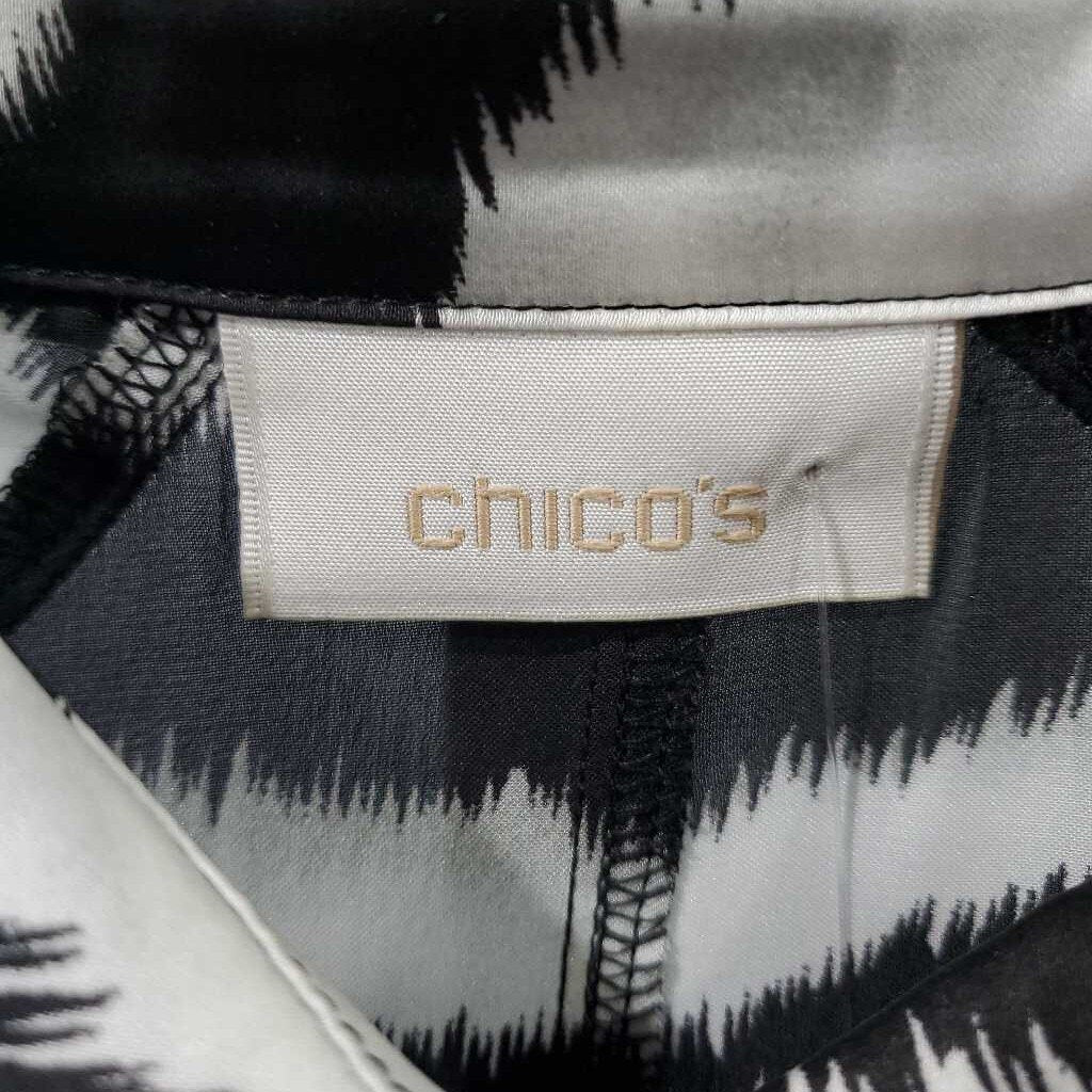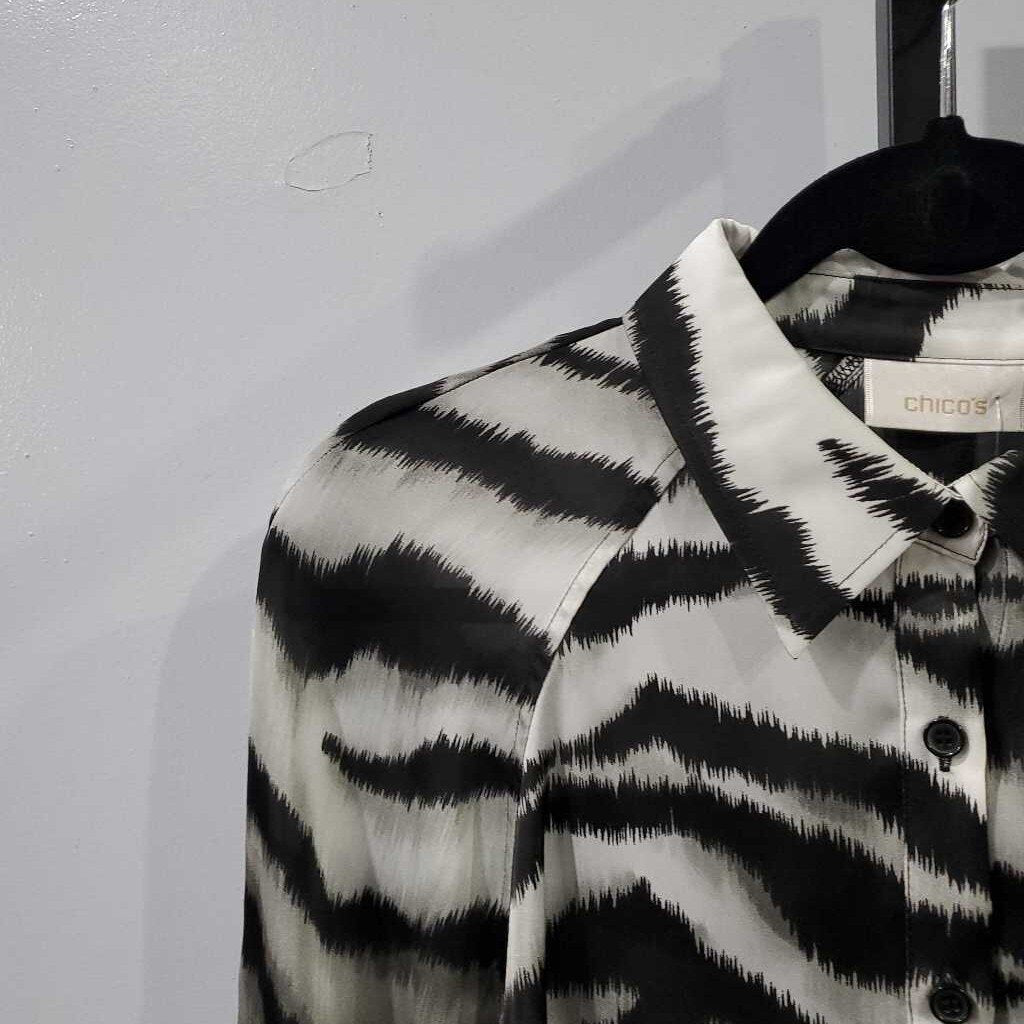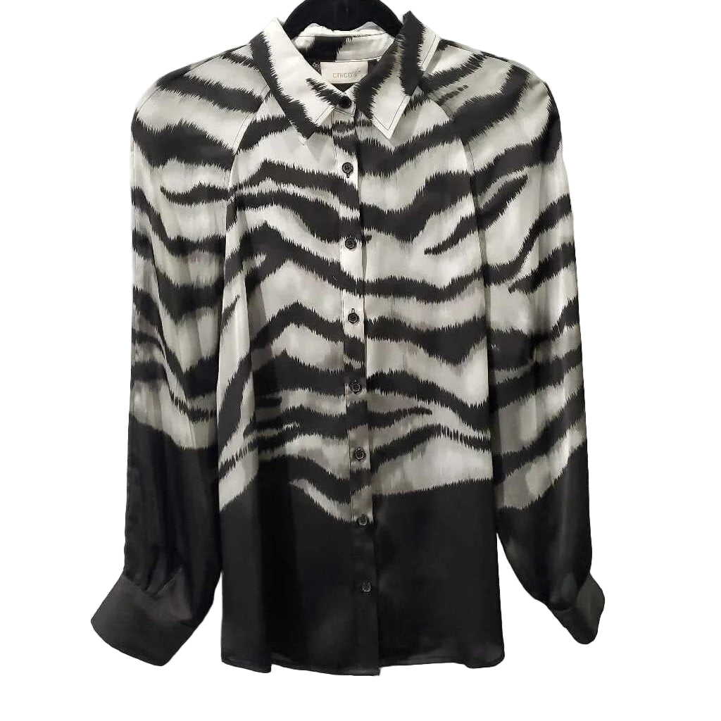 Long Sleeve Satin Print Button Up Top, Chico's Size 1 β