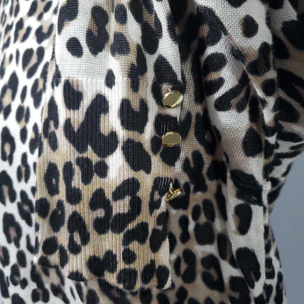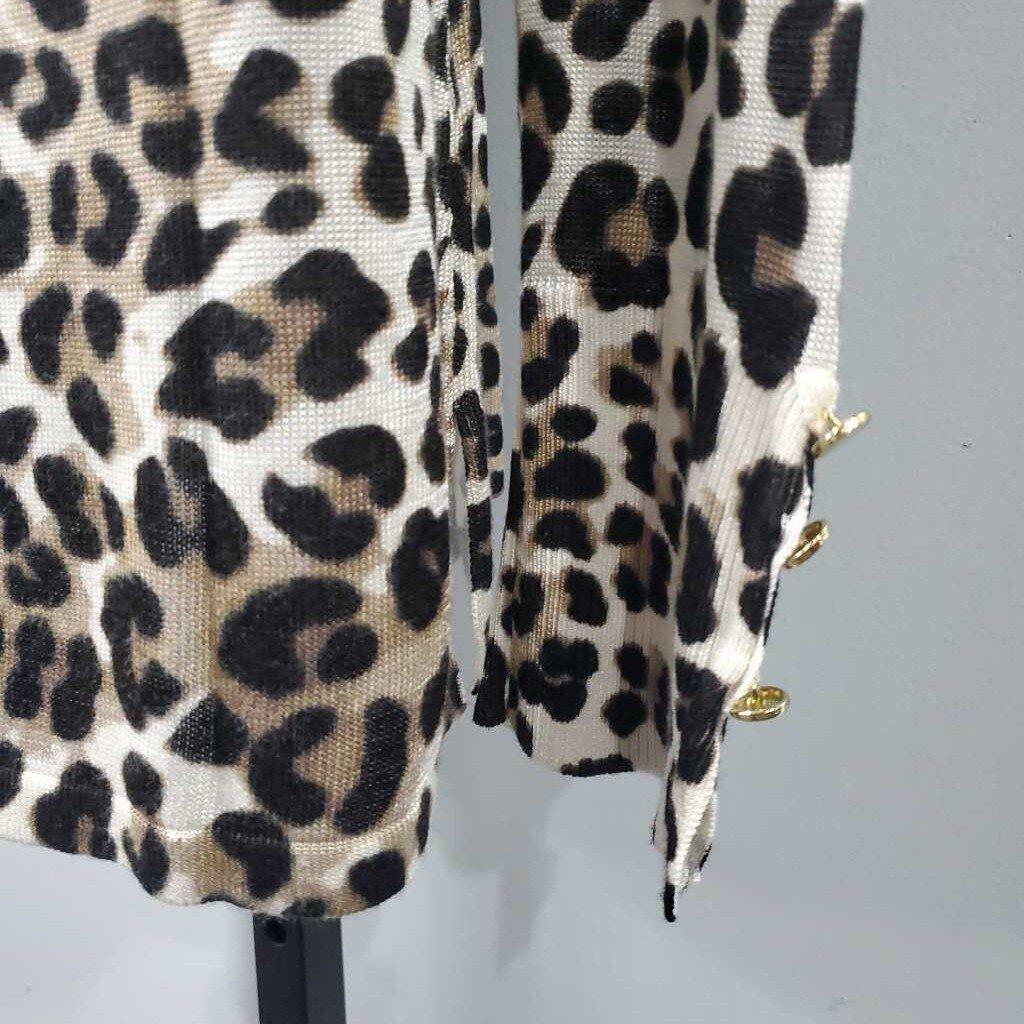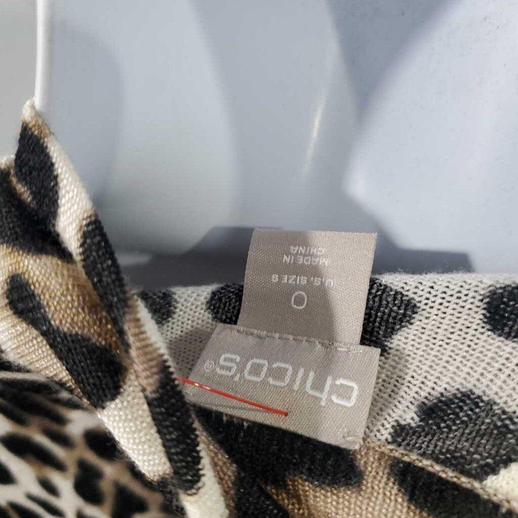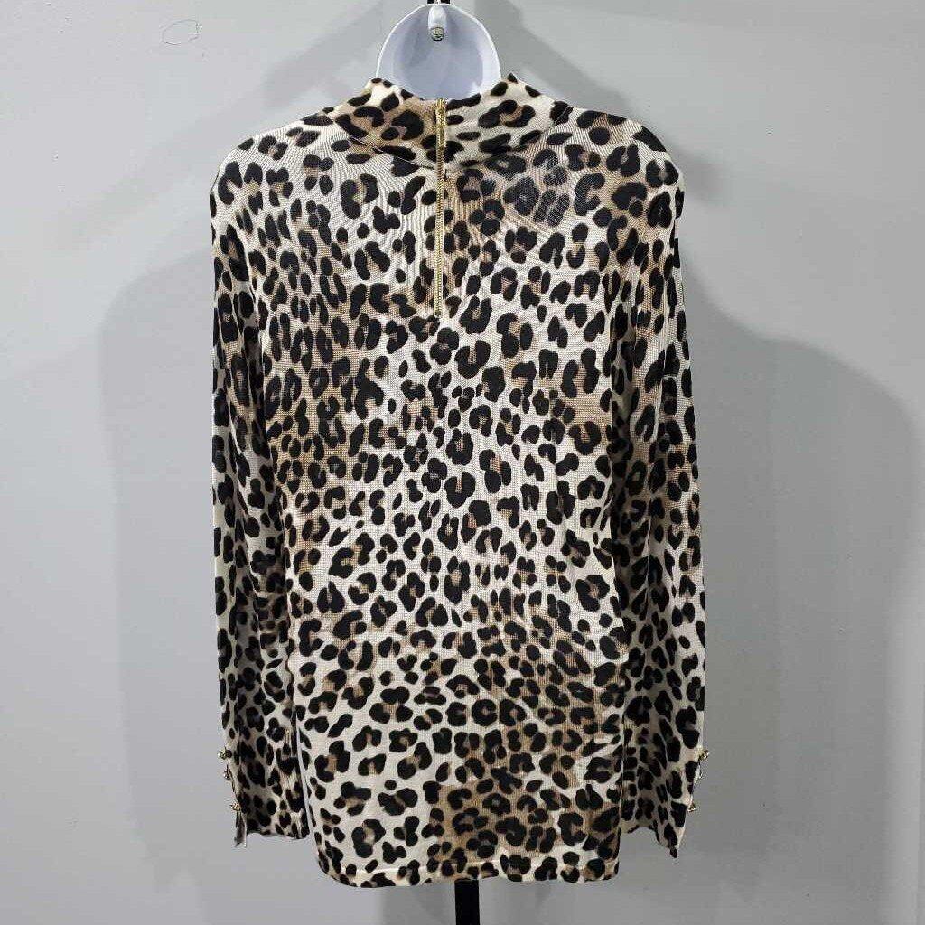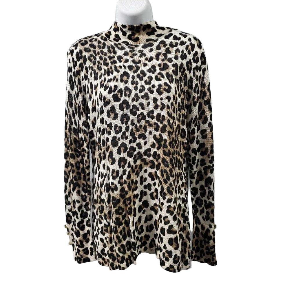 Long Sleeve Mock Neck Leopard Print Knit Top, Back Zip, Chico's Size 0 β