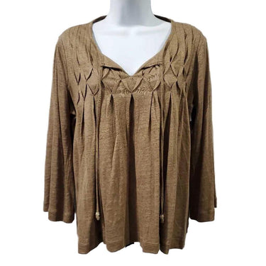 Long Sleeve Split Neck Pleated Knit Top, Chico's Size 0 â