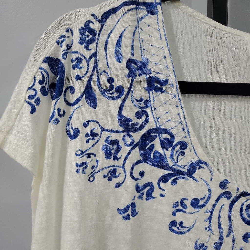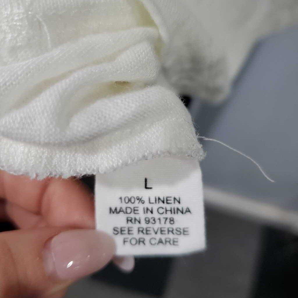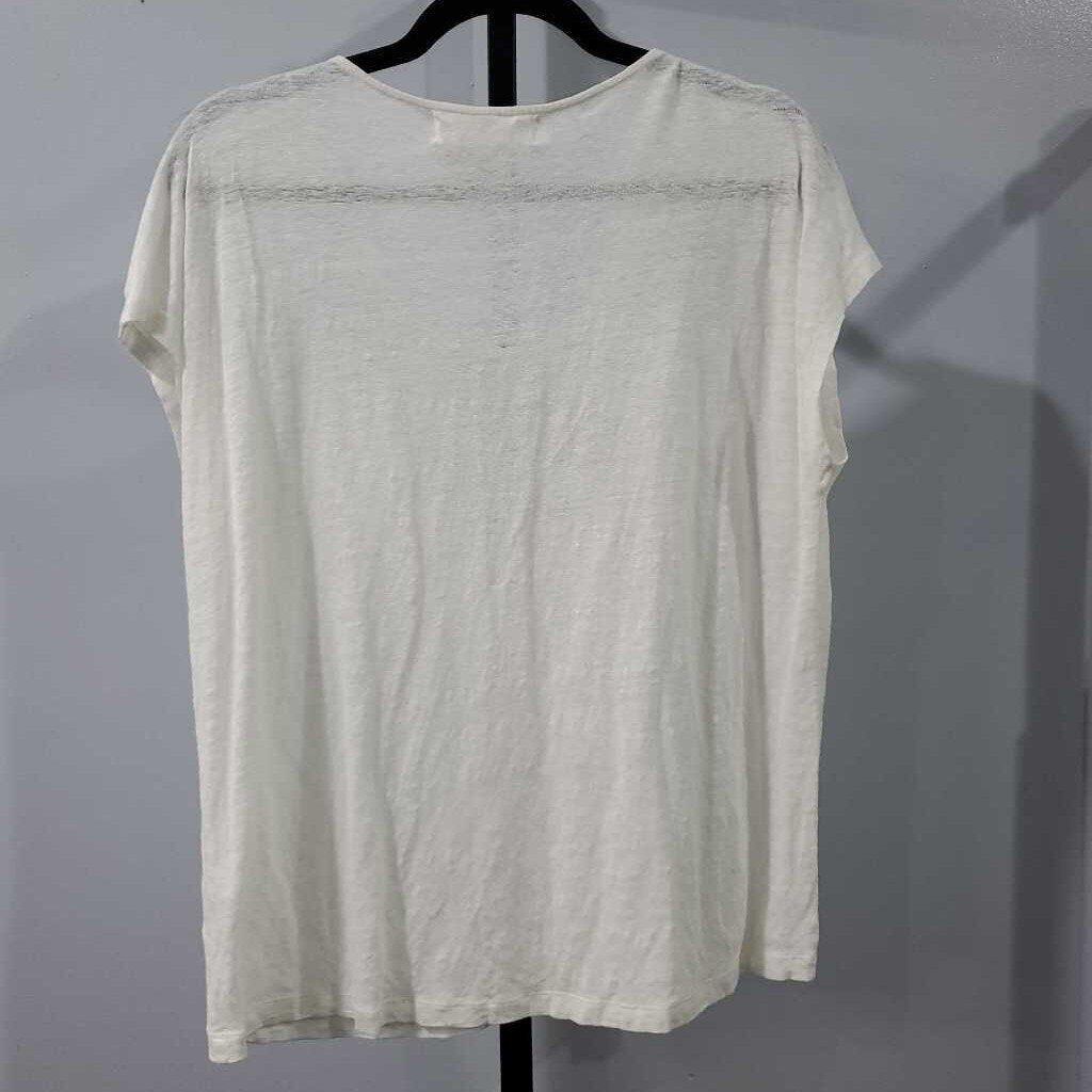 Cap Sleeve Linen Floral Neckline Knit Top, 100% Linen â