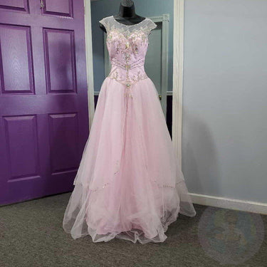 Cap Sleeve Embellished Rhinestone Tulle Formal With Back Button Detail ā