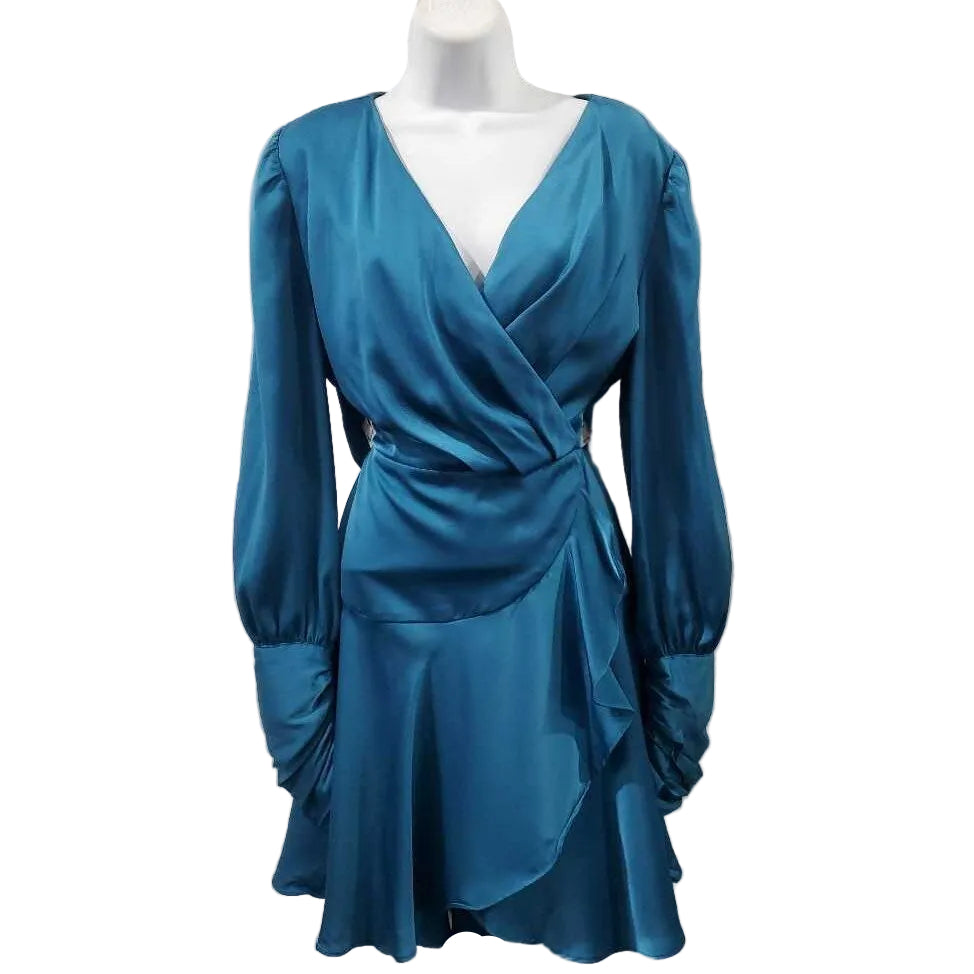 Long Sleeve Surplice Satin Dress β