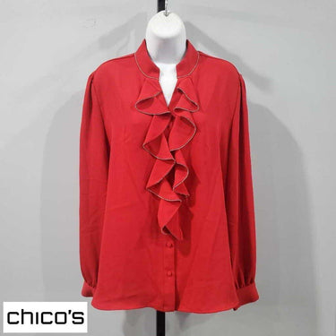Long Sleeve Ruffle Neck Dress Blouse, Chico's Size 2 β