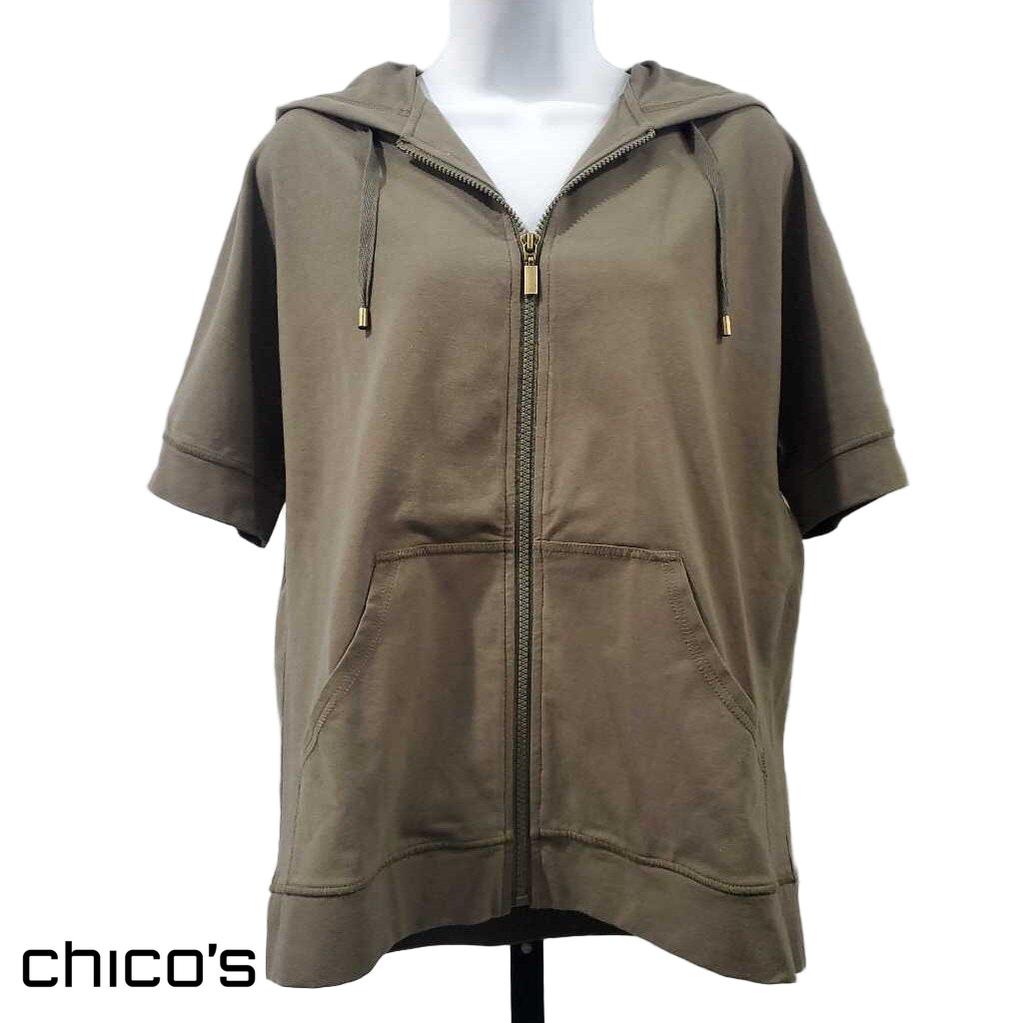 Chico SZ 0 *Short Sleeve Knit Pocket Zipper Jacket βœ… Triple inspected for quality, condition & authenticity! πŸ’― Authenticity guaranteed or money back. ❓ Questions? Contact us. πŸ“ Ships from Enterprise, AL.