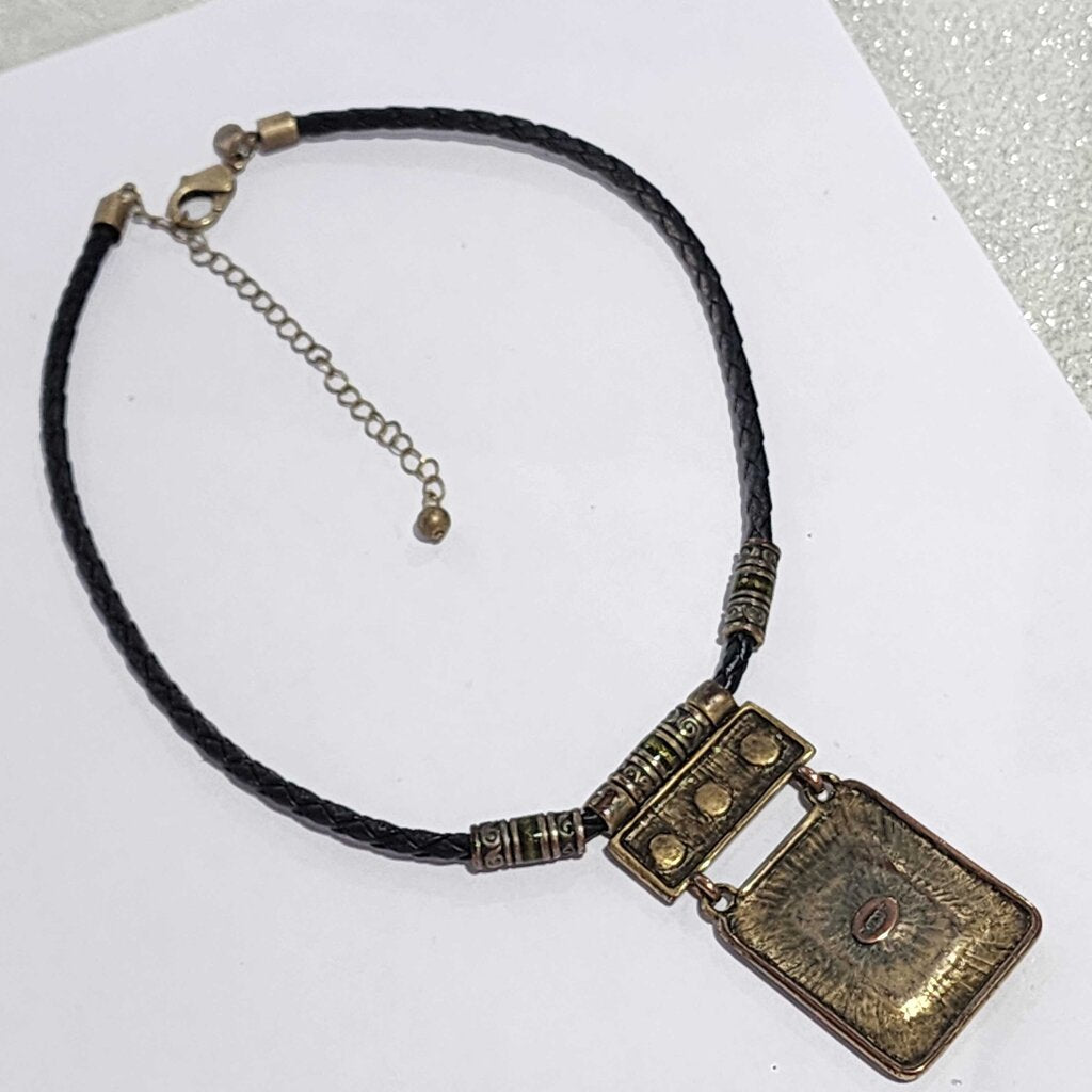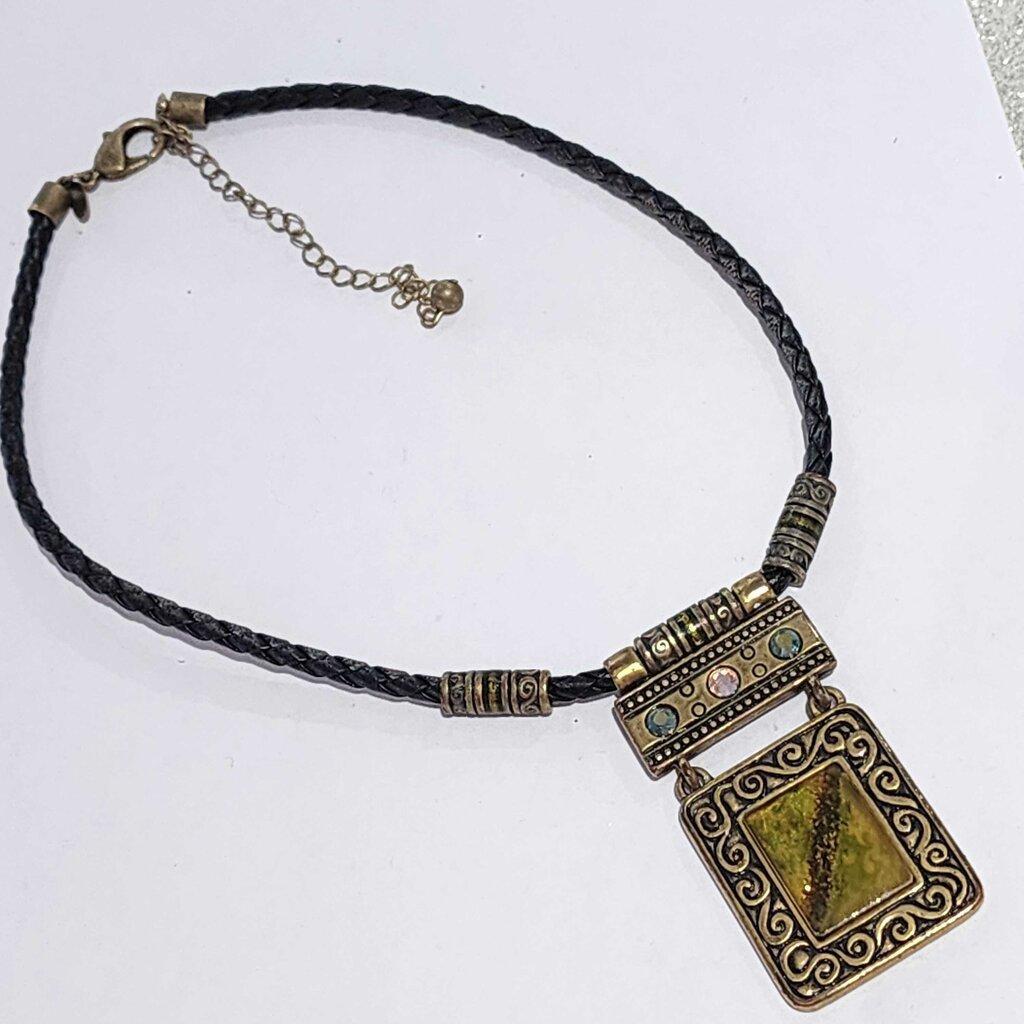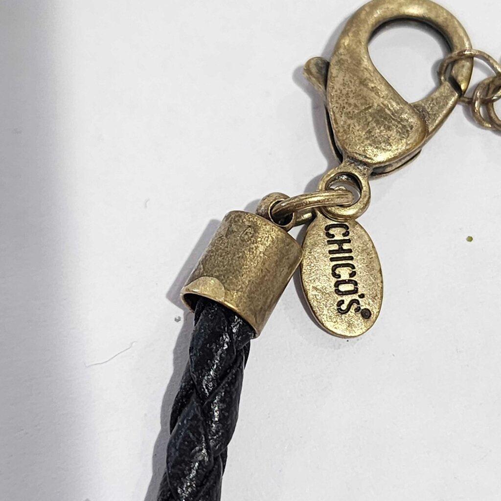 Chico's Ornate Braided Cord Pendant Necklace with Gem Accents β