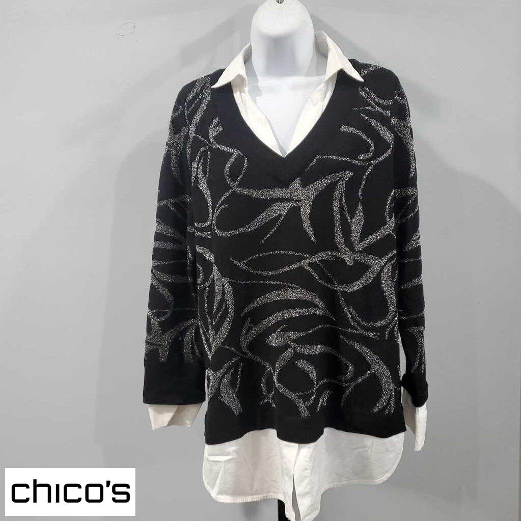 Faux 2pc Long Sleeve Metallic Design Sweater β