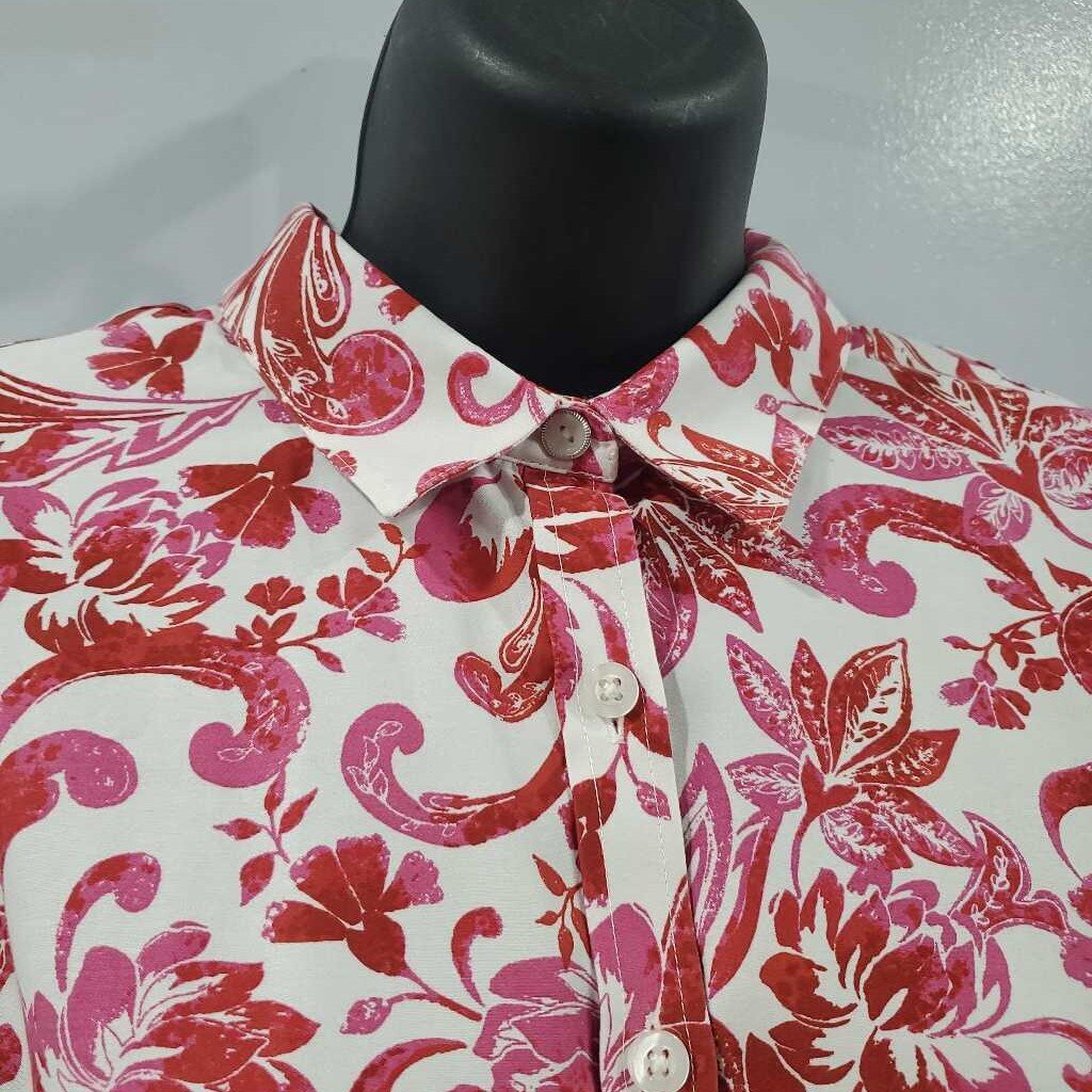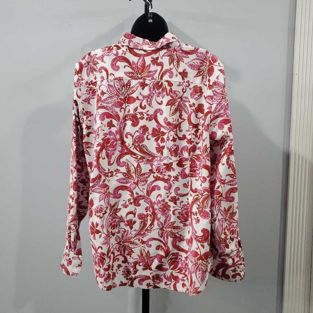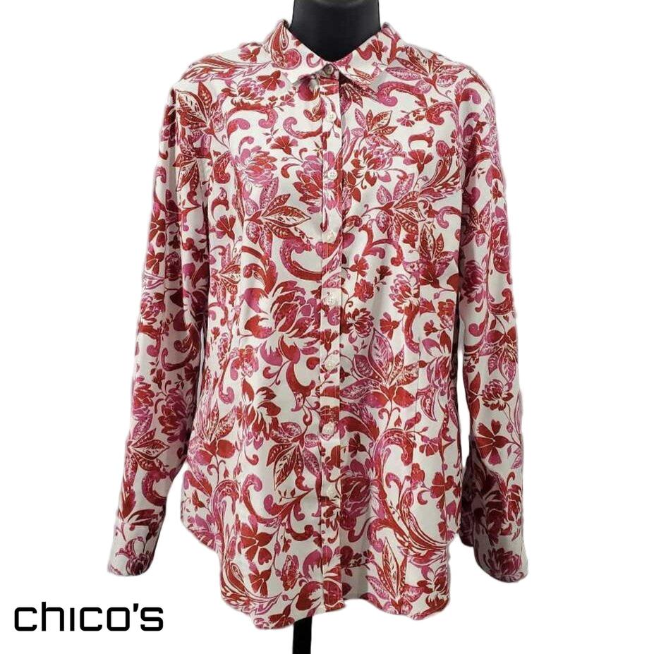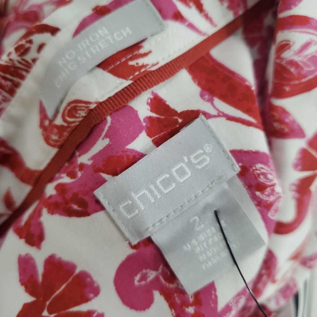 Long Sleeve Fitted Button Down, No-Iron Top, Floral Pattern, Chico's size 2 β