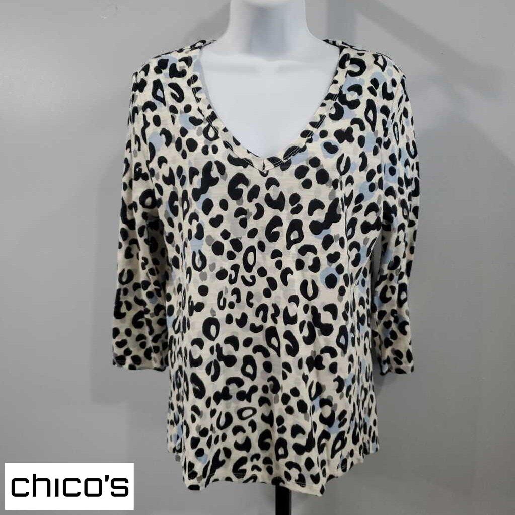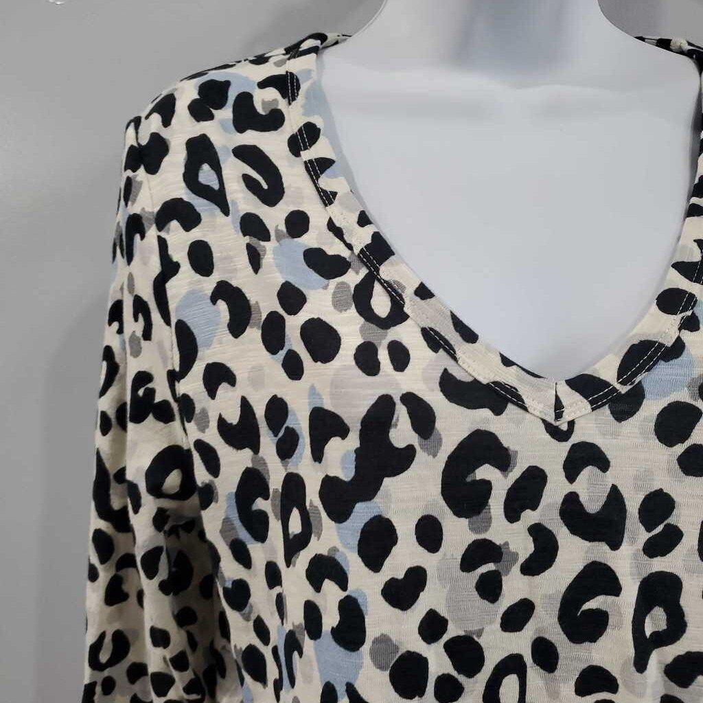 Long Sleeve Leopard print High/Low Top, Cotton Blend, Chico's size 0 β