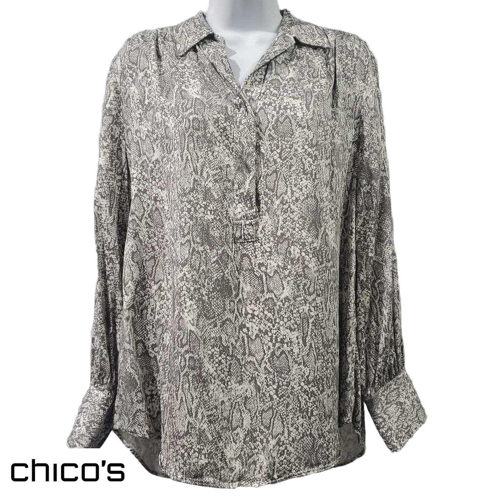 Long Sleeve Snake Print Half Button Top, Chico's Size 1 ✅ Triple inspected for quality, condition & authenticity! 💯 Authenticity guaranteed or money back. ❓ Questions? Contact us. 📍 Ships from Enterprise, AL.