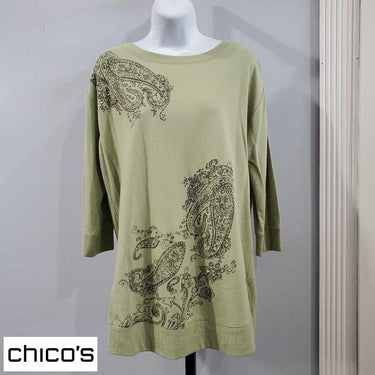 3/4 Sleeve Paisley Sequin Knit Top, Chico's Size 0 β