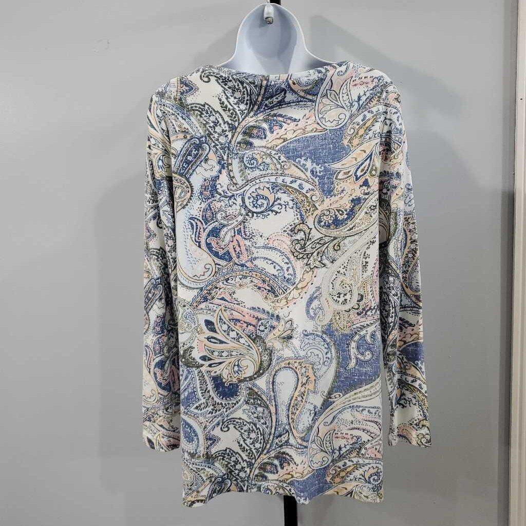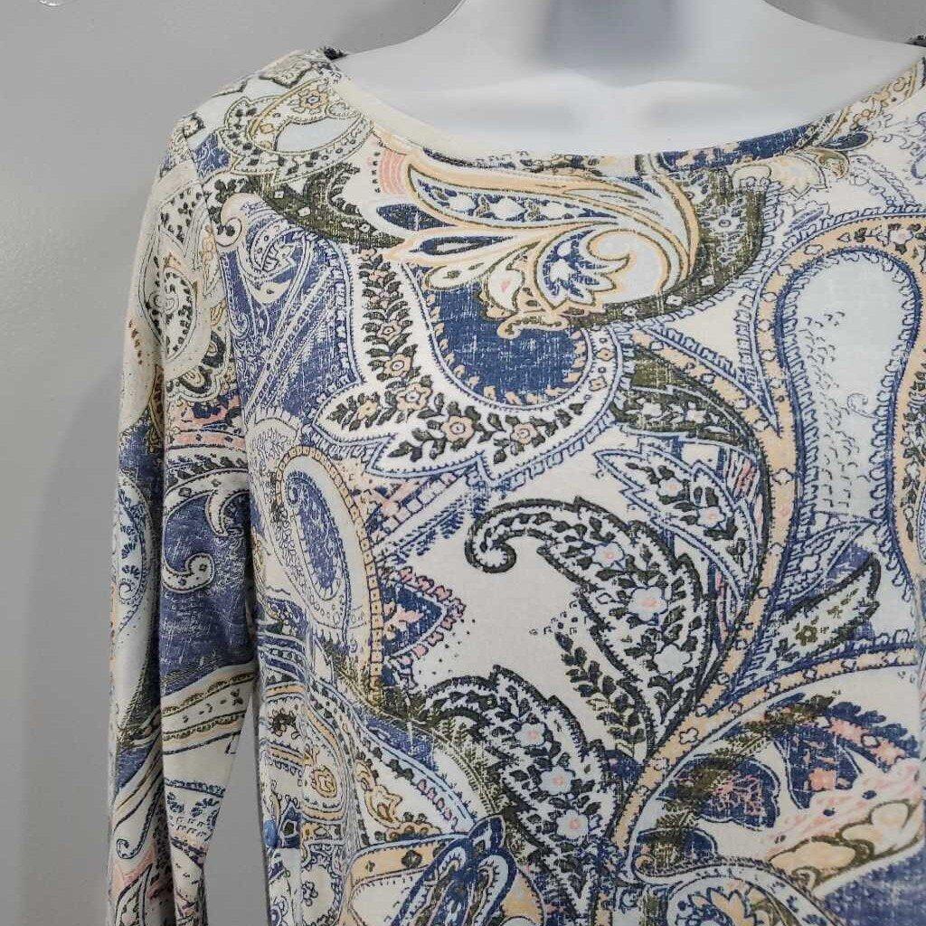 Long Sleeve Paisley Print Knit Top, Chico's Size 0 β