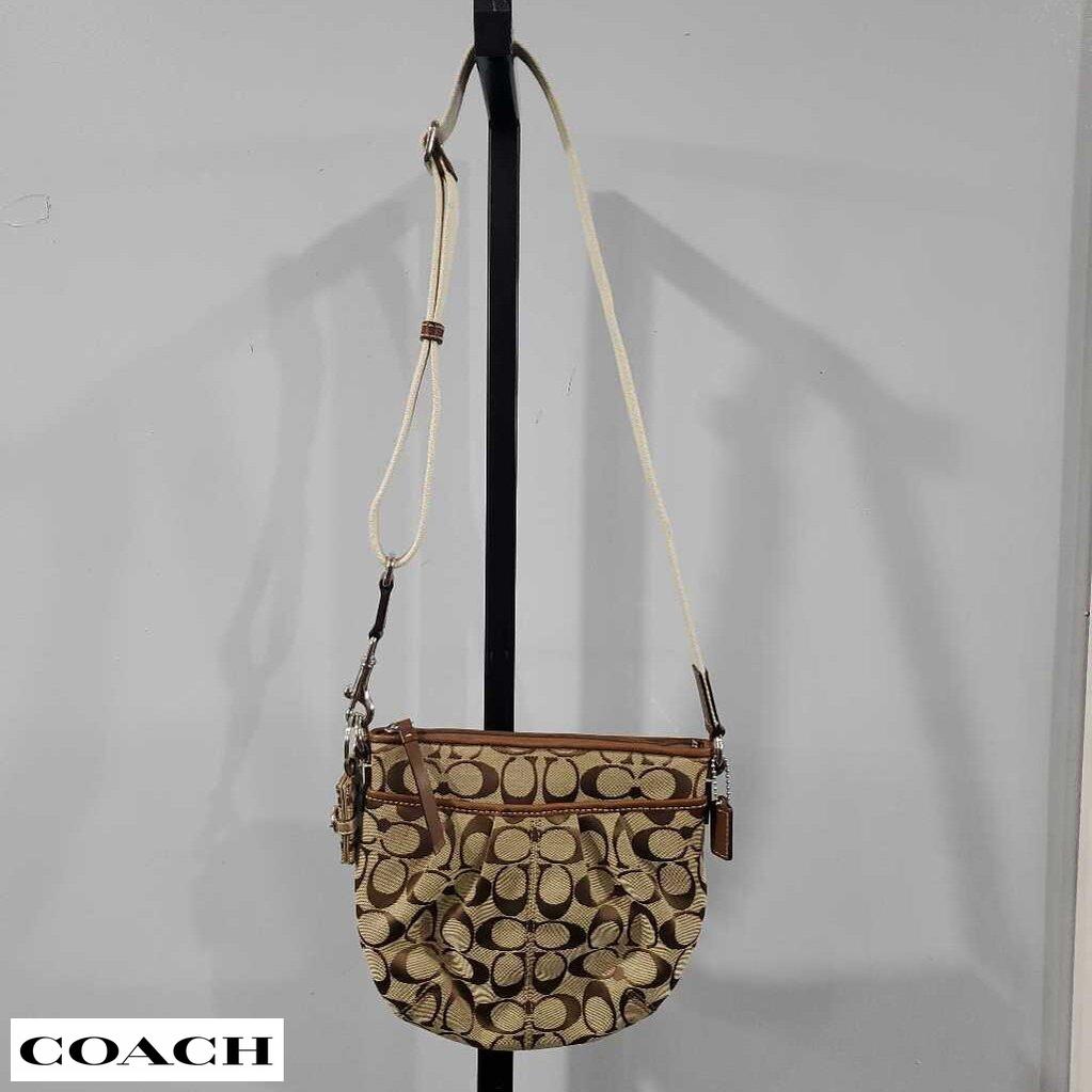 Coach Signature Canvas Crossbody with Mini Purse Charm – Brown & Tan