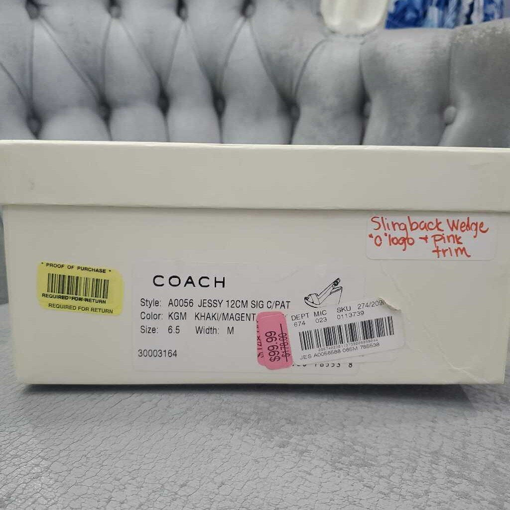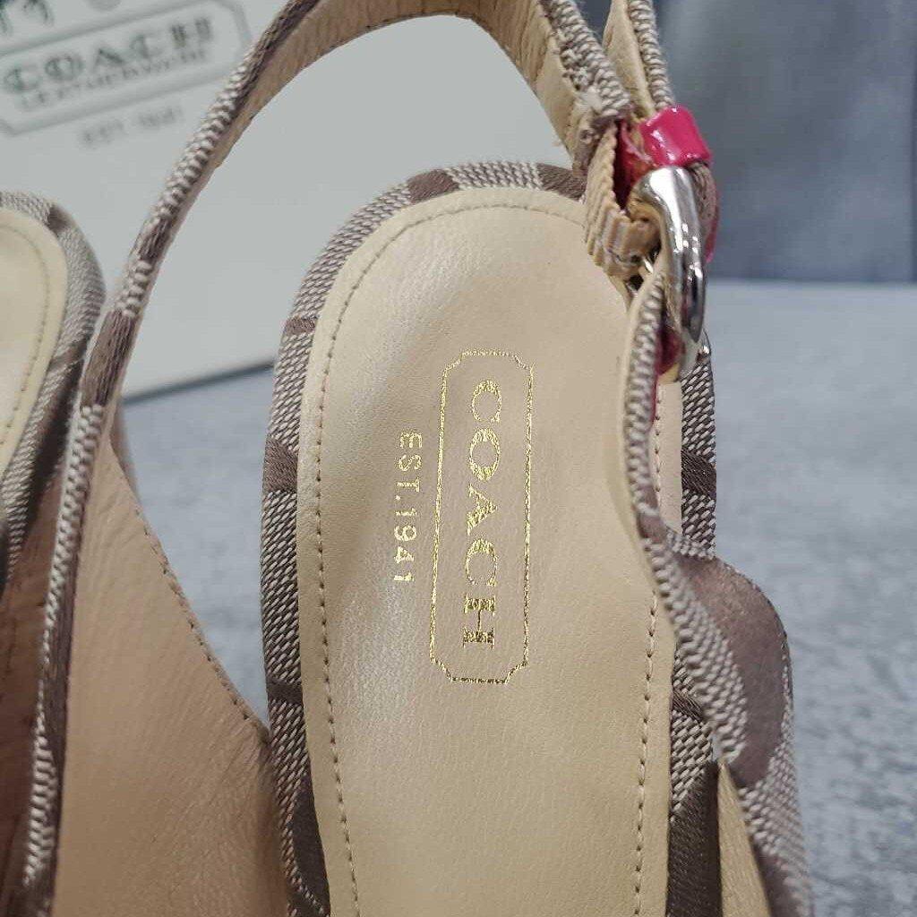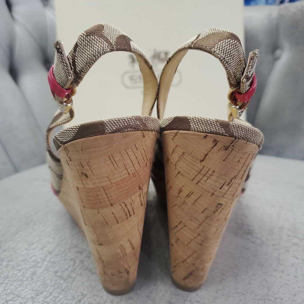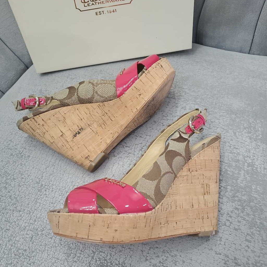 Jessy Wedge Logo and Patent Leather Sandals, minor signs of wear mostly on the bottoms, with original box β