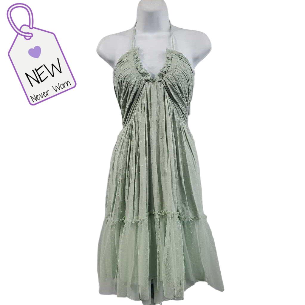 Halter Neck Tie Back Chenille Dot Dress NWT β