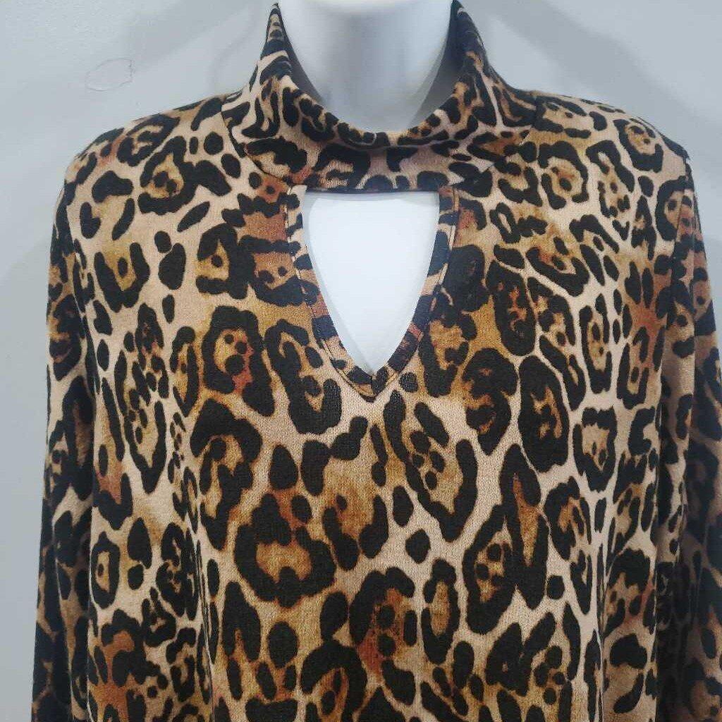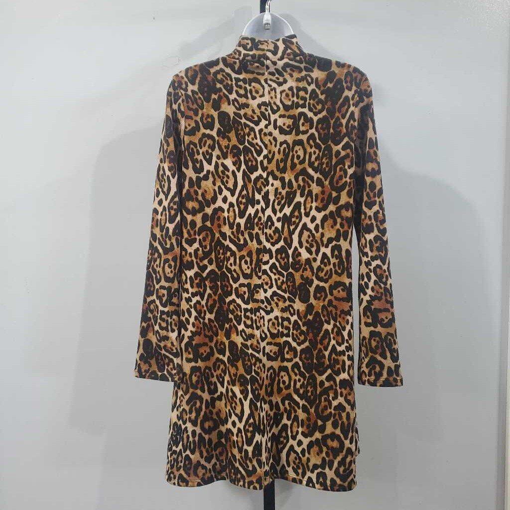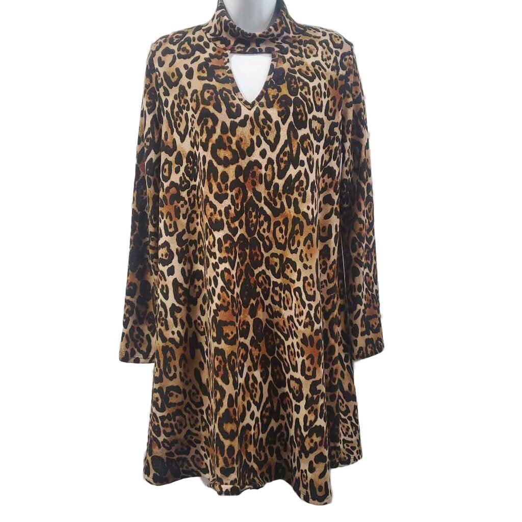 Long Sleeve Neck Cutout Leopard A-Line Knit Dress β