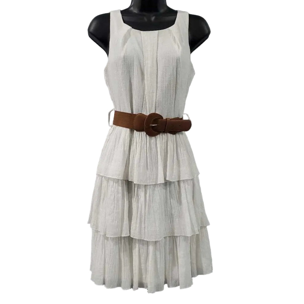 Sleeveless Dress w/Tiered Skirt, Belt β