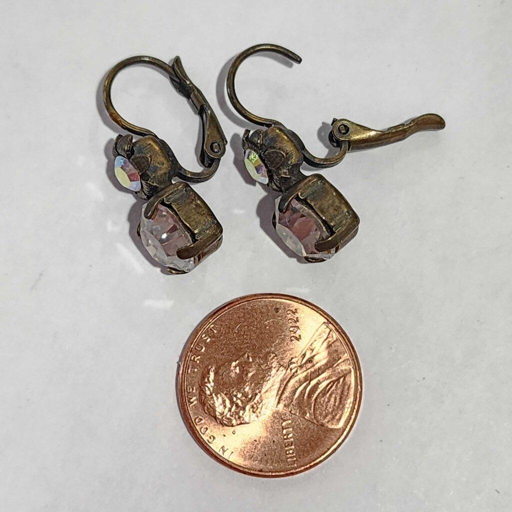 Signed Sorrelli Small Double Crystal Drop Earrings, Clear/Antique Gold ✅ Triple inspected for quality, condition & authenticity! 💯 Authenticity guaranteed or money back. ❓ Questions? Contact us. 📍 Ships from Enterprise, AL.