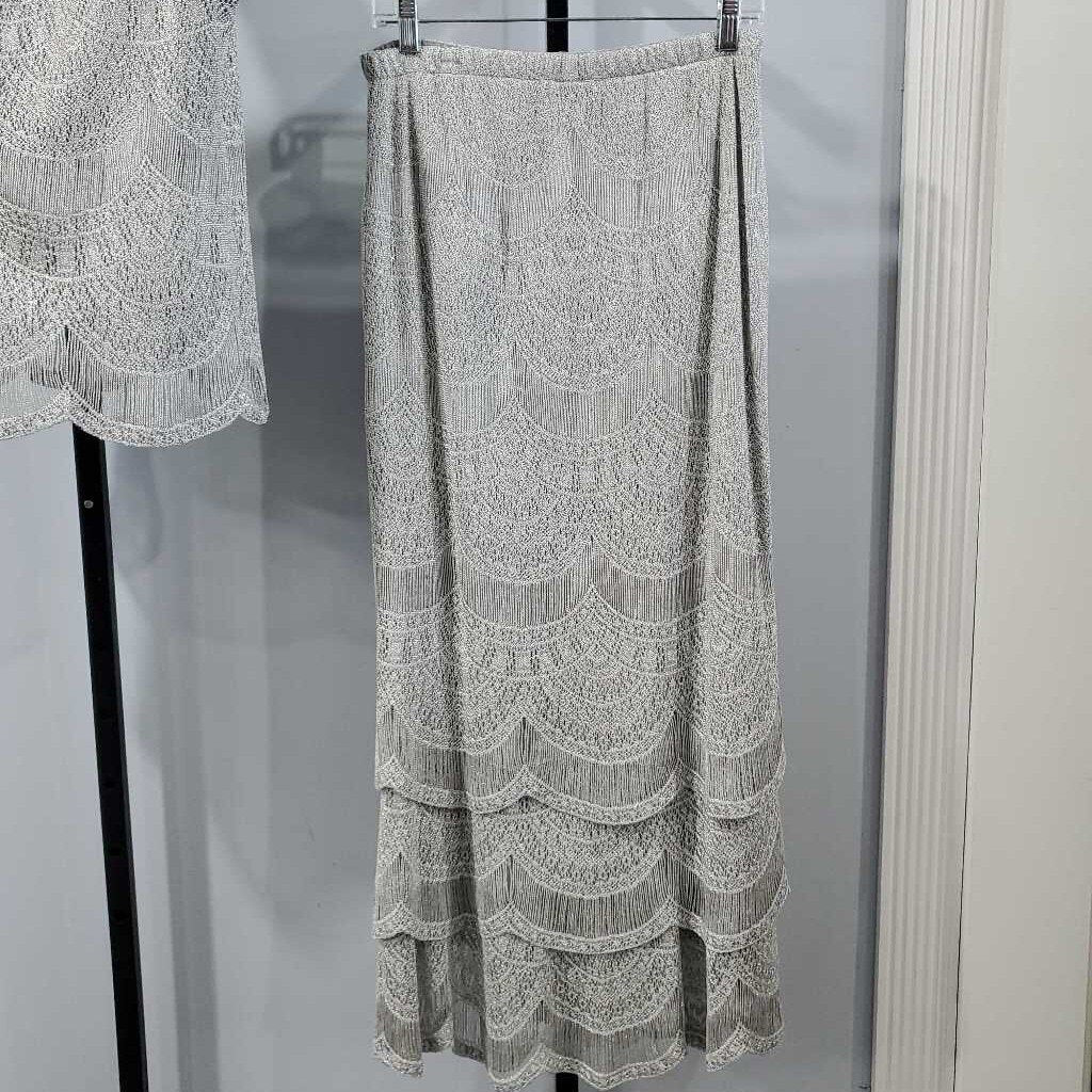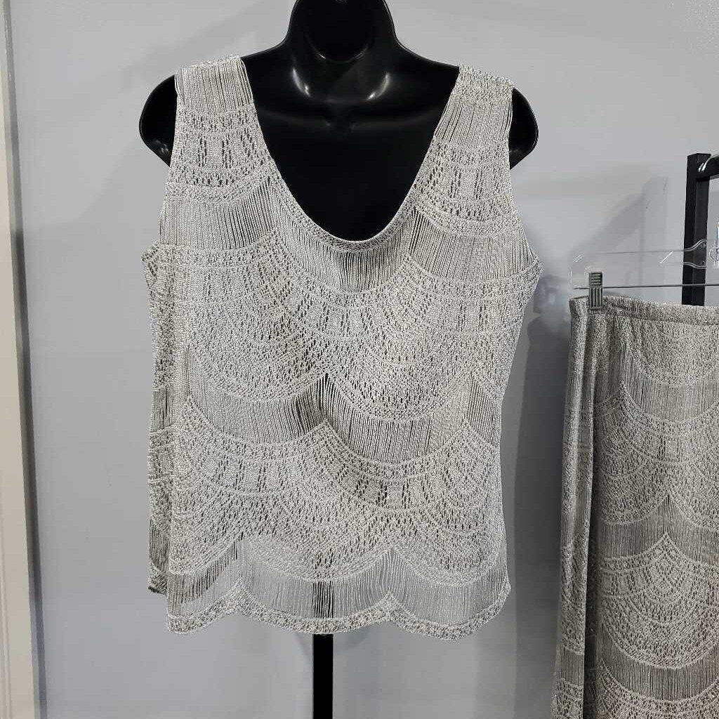 3 Pc Scalloped Silver Jacket Top & Skirt Set â