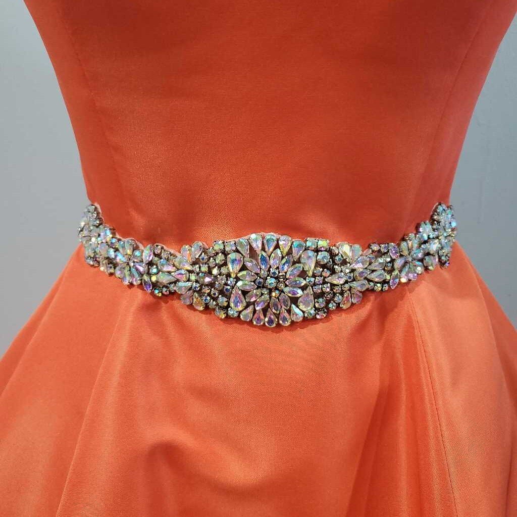 Spaghetti Strap Embellished Waist Criss Cross Back Ballgown β