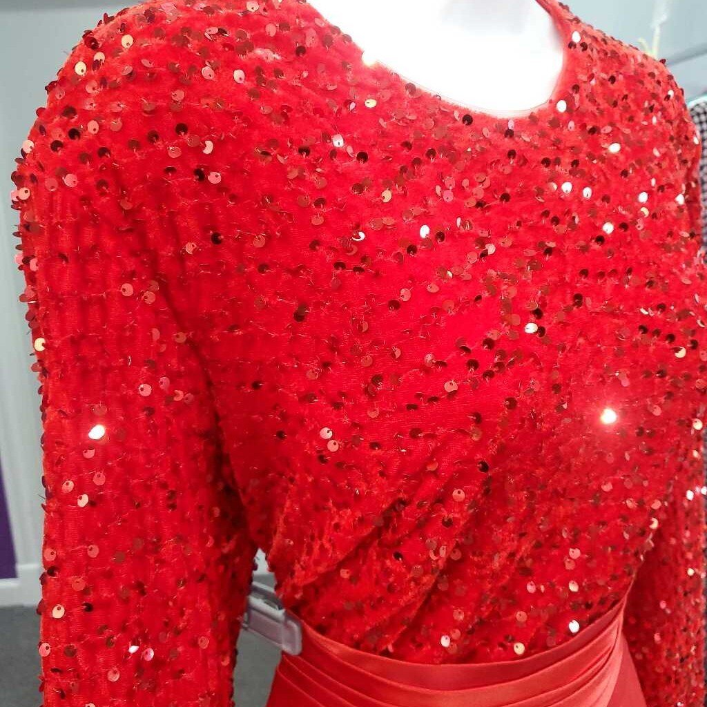3/4 Sleeve Sequin Velvet Bodice, Satin Skirt, Formal, 36" Waist