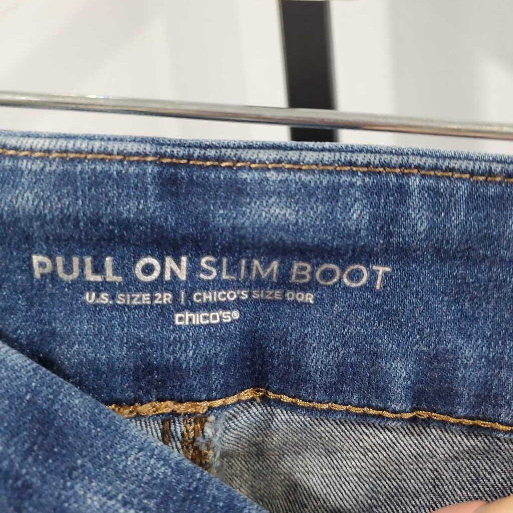 Pull On Slim Stretch Bootcut Jeans, Slit Fray Hem, Chico's Size 00 β