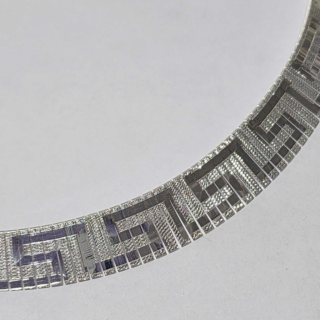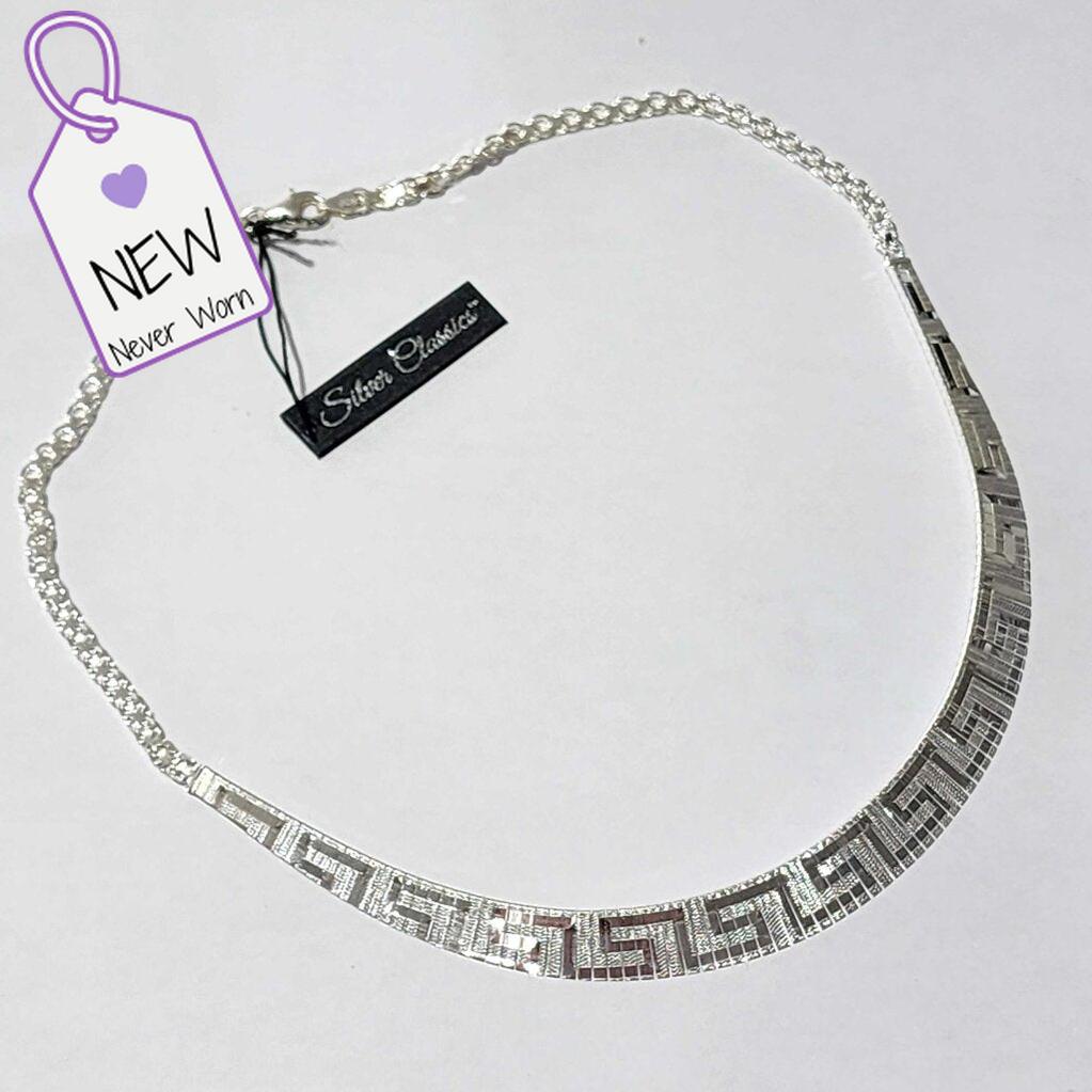 Keywords: Sterling Silver, Greek Key, Meander, Necklace, Collar, Statement Jewelry, Ancient Greek, Geometric Pattern, Silver Classics, 925 Silver, Choker Style, Greek Jewelry, Eternity Symbol, JCM, Jacmel Jewelry, Made in Italy, Italian Silver