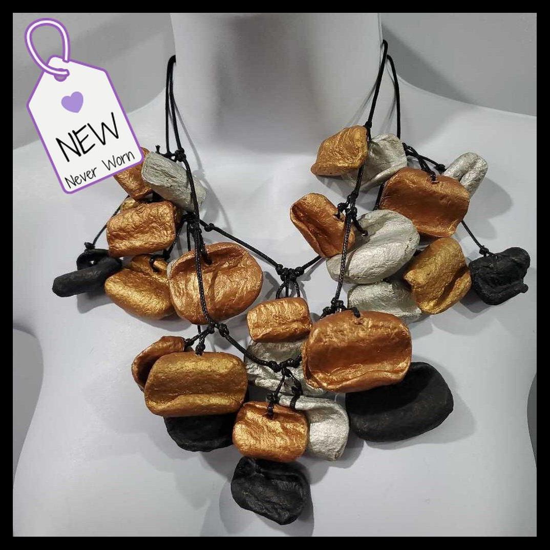 Double Strand Wavy Metallic Discs Necklace NWT β