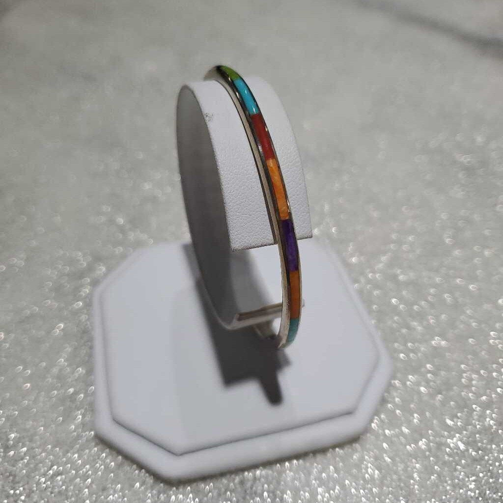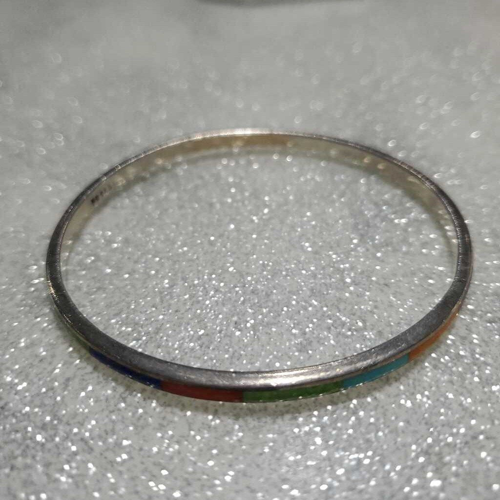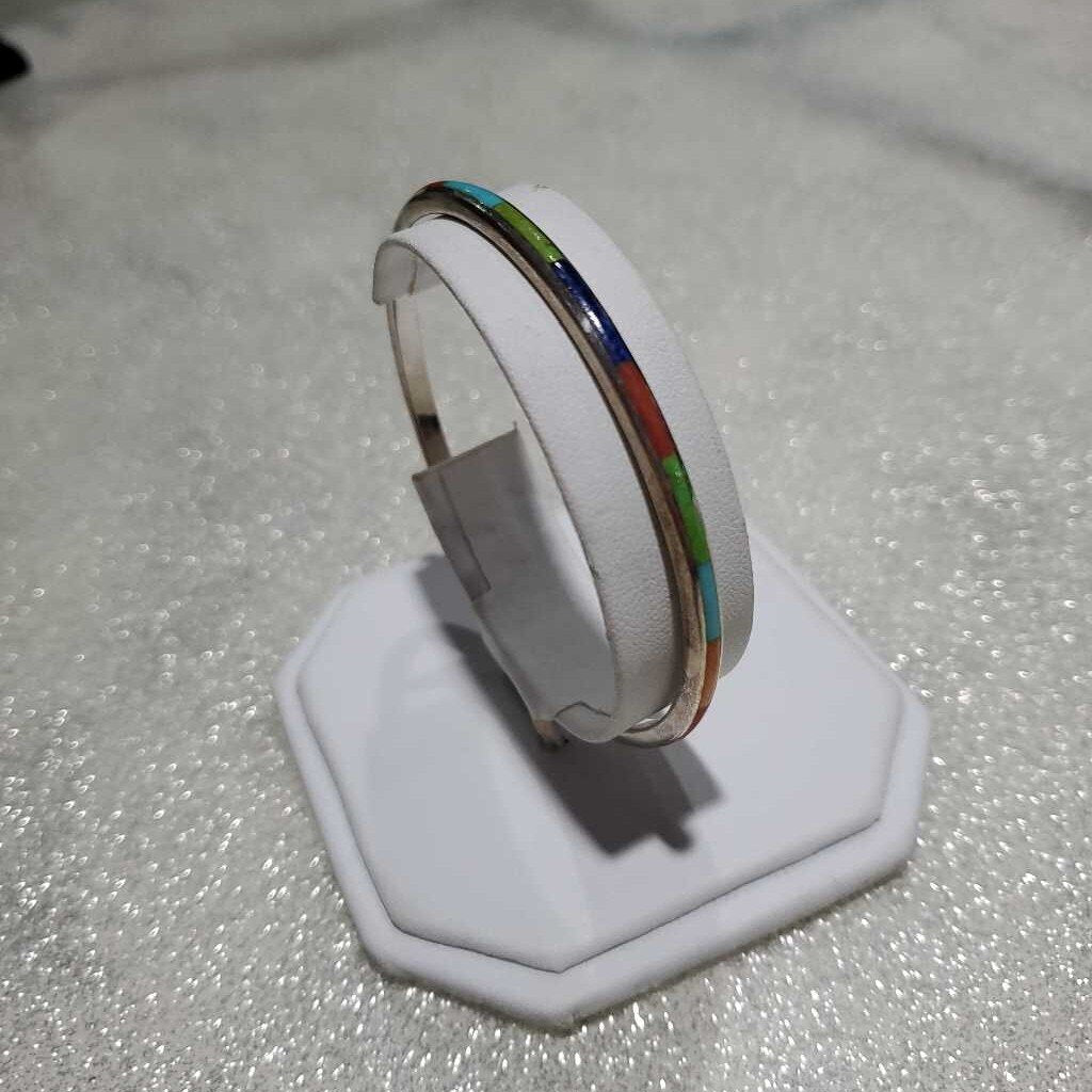 Sterling Silver Multi Color Stone Inlay Thin Bangle, 11 grams ✅ Triple inspected for quality, condition & authenticity! 💯 Authenticity guaranteed or money back. ❓ Questions? Contact us. 📍 Ships from Enterprise, AL.