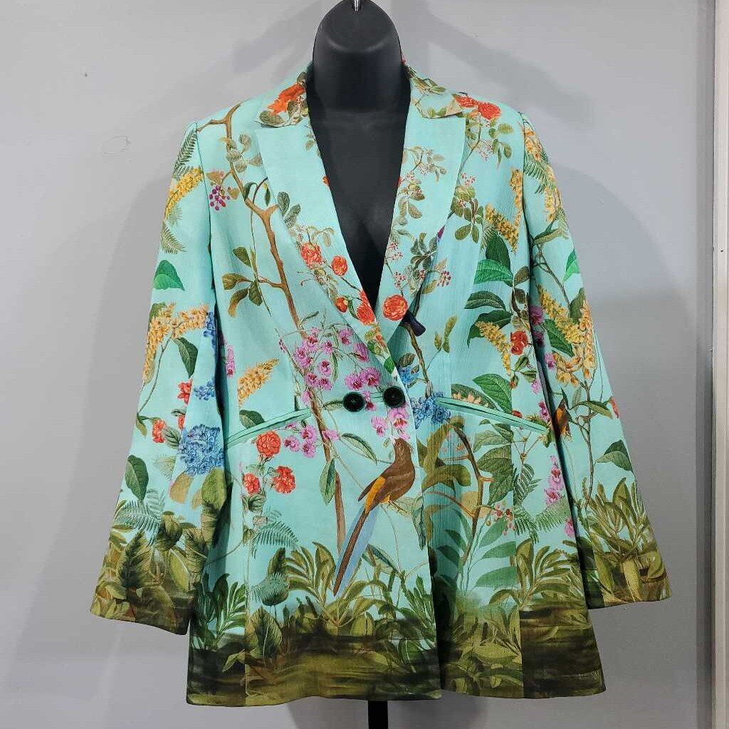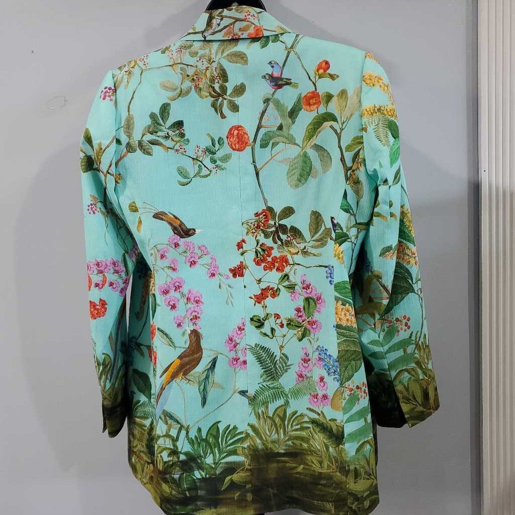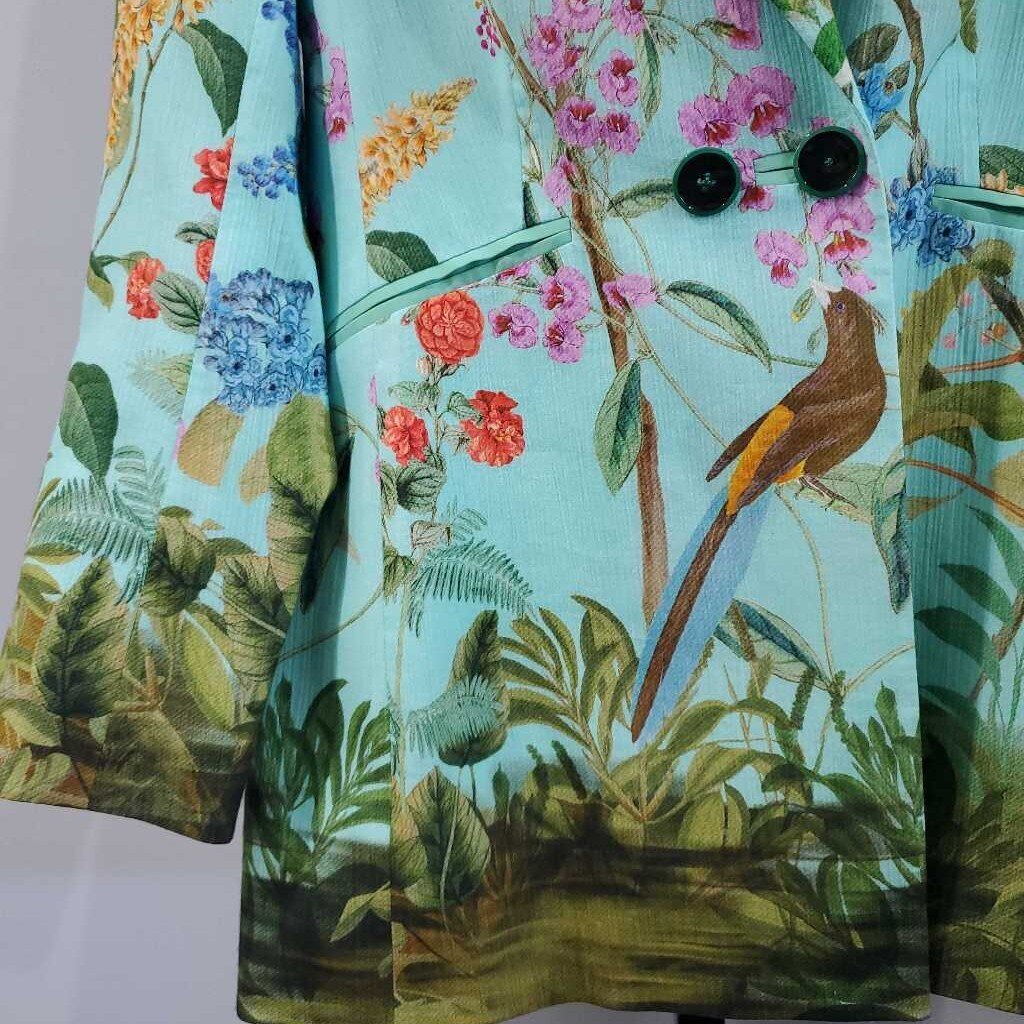 Long Sleeve Botanical Print Cotton Blazer, Beautiful Bird Garden Border Print â