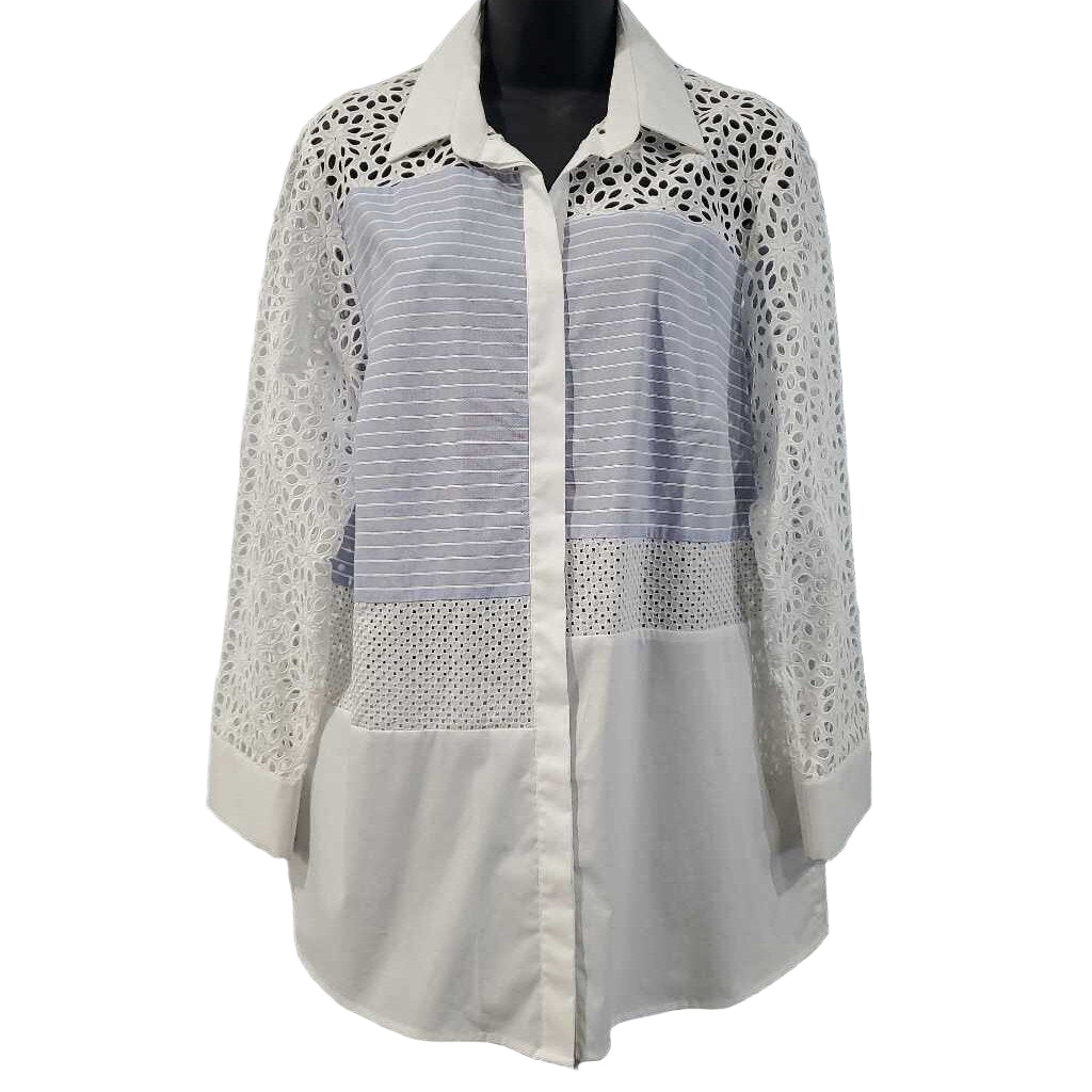 Eyelet Sleeve Striped Tunic, EU Size 44 â