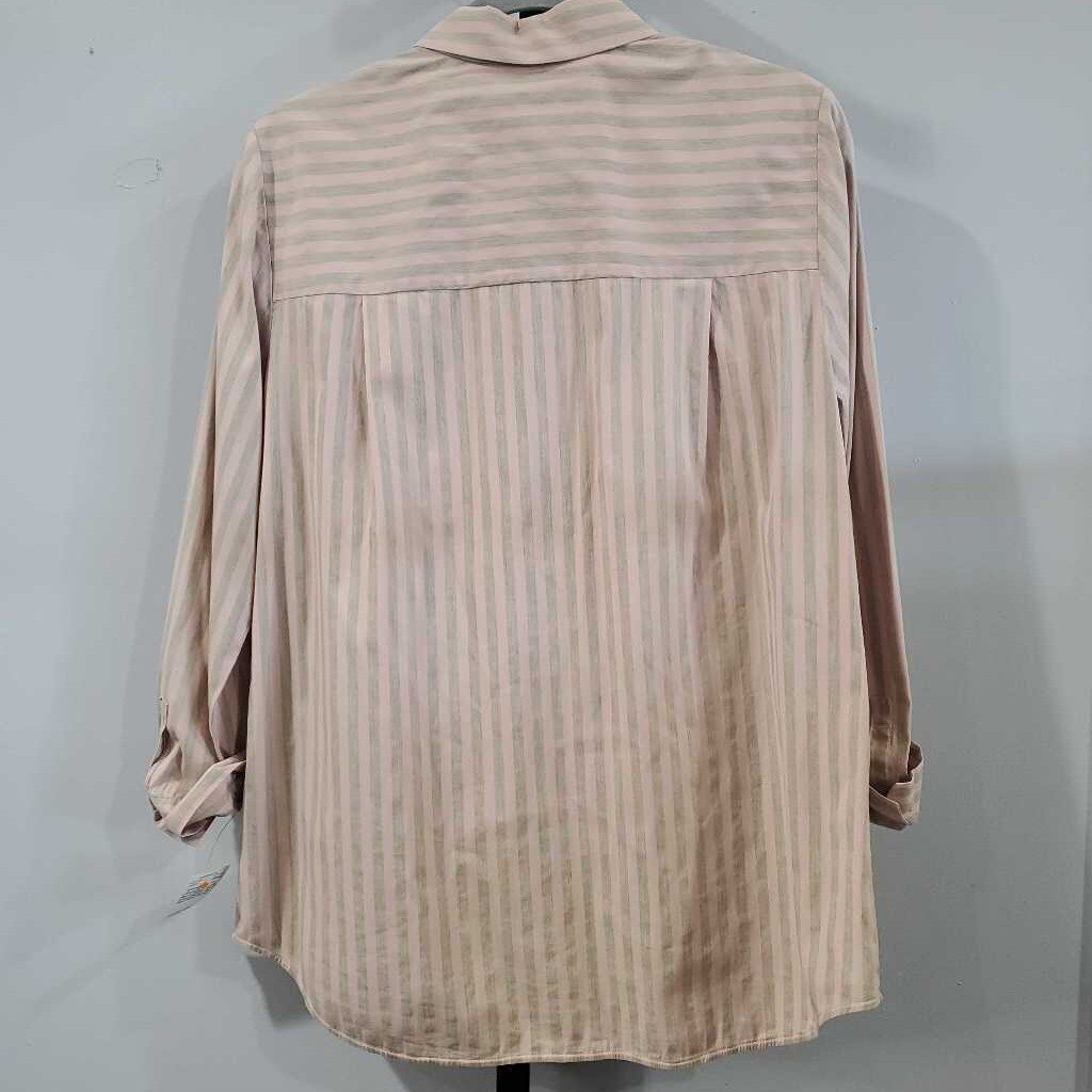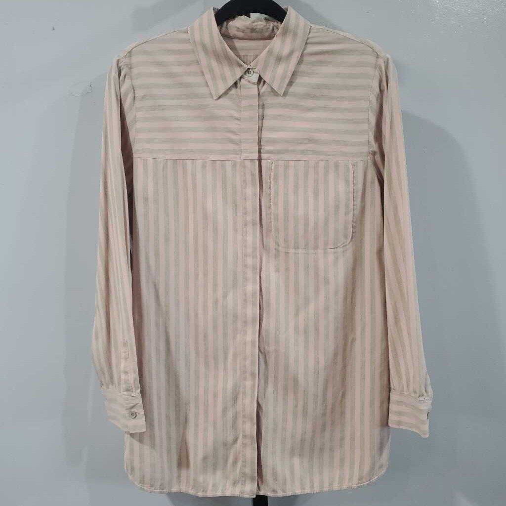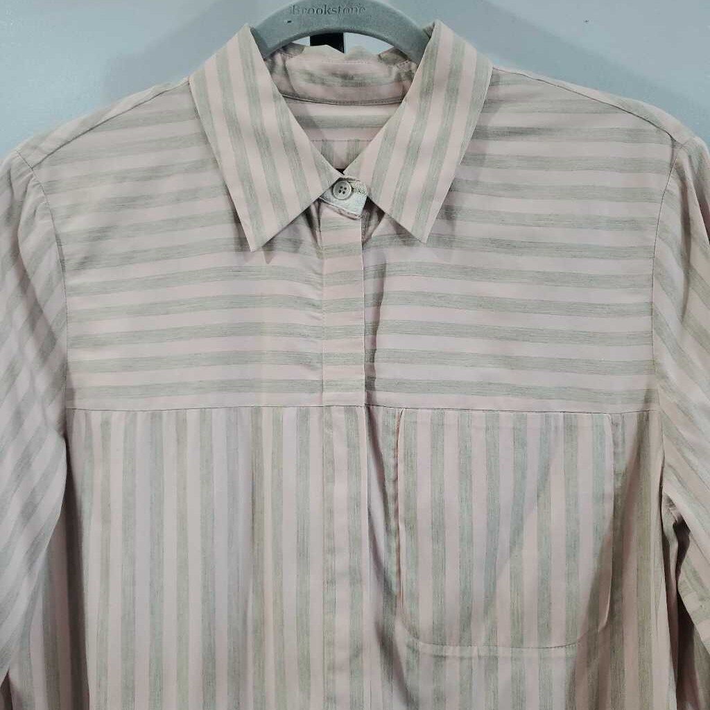 Long Sleeve Cotton Blend Striped Button Shirt, Hidden Button Placket β