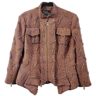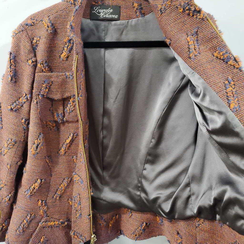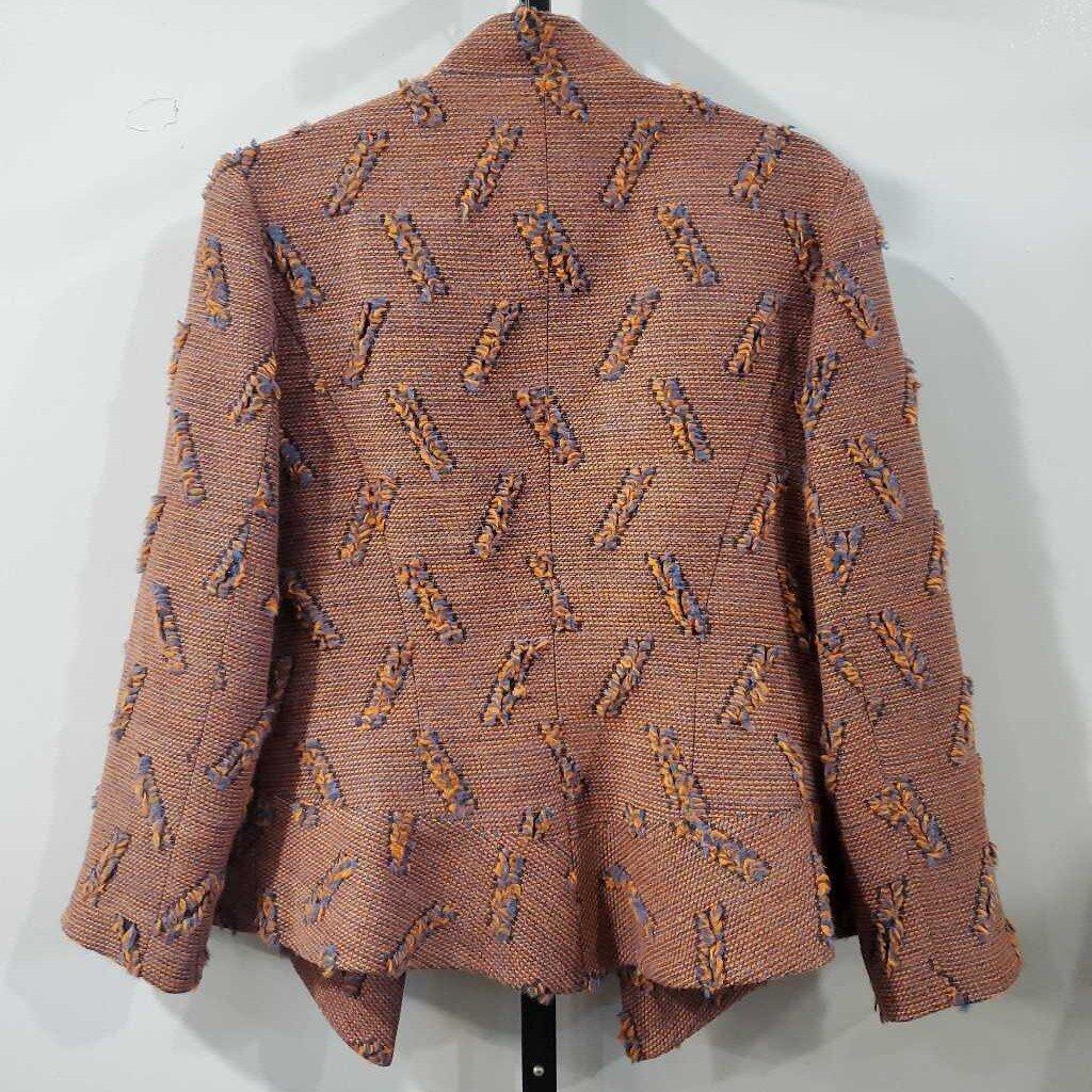 Stylish multicolored textured zip-up jacket by Lourdes Chavez featuring front pockets, ideal for casual and semi-formal occasions. βœ… Triple inspected for quality, condition & authenticity! πŸ’― Authenticity guaranteed or money back. ❓ Questions? Contact us. πŸ“ Ships from Enterprise, AL.