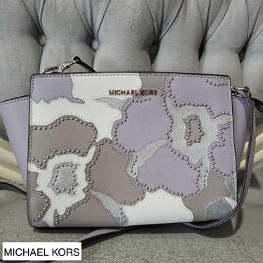 Stylish Michael Kors Selma medium messenger bag featuring a lilac multi floral design with rhinestone embellishments, perfect for daily use or special occasions. ✅ Triple inspected for quality, condition & authenticity! 💯 Authenticity guaranteed or money back. ❓ Questions? Contact us. 📍 Ships from Enterprise, AL.