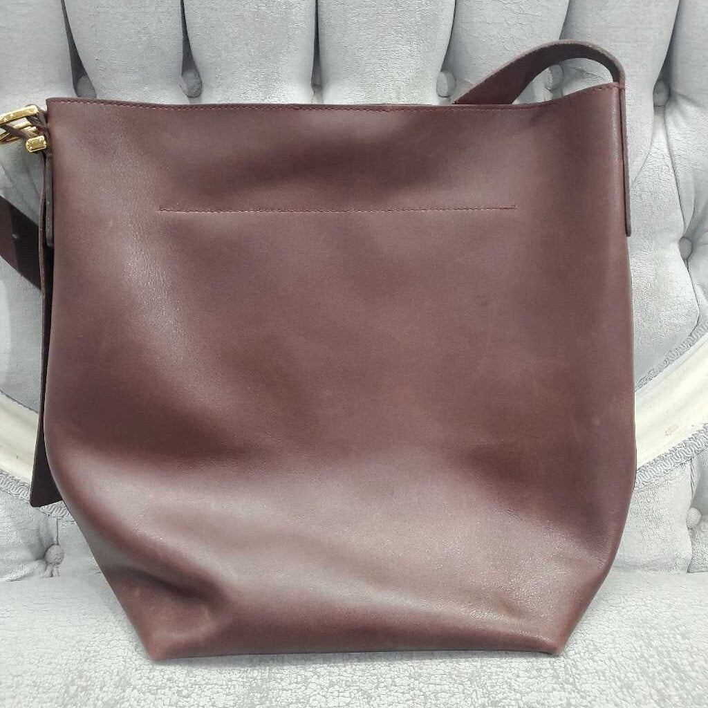 Madewell Brown Leather Shoulder Tote Bag Gold Buckle Adjustable Strap β