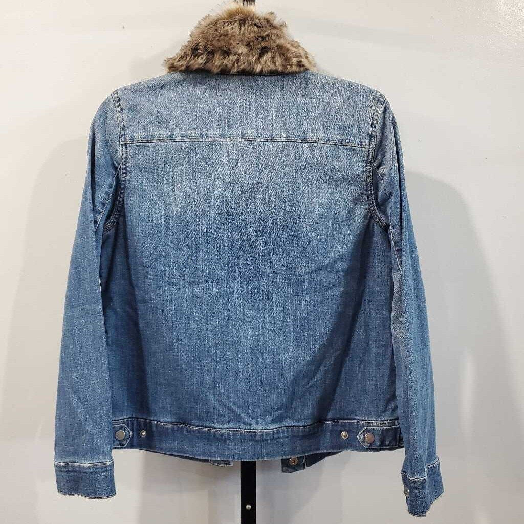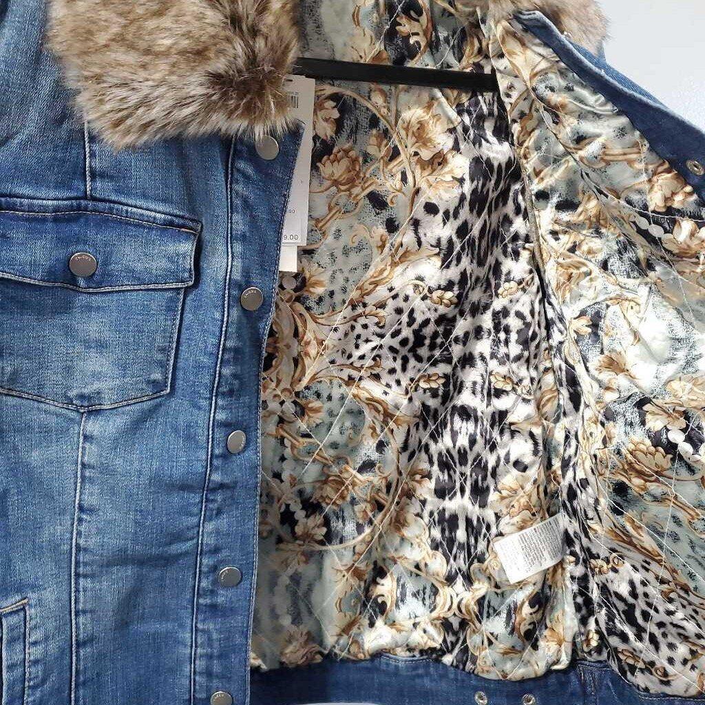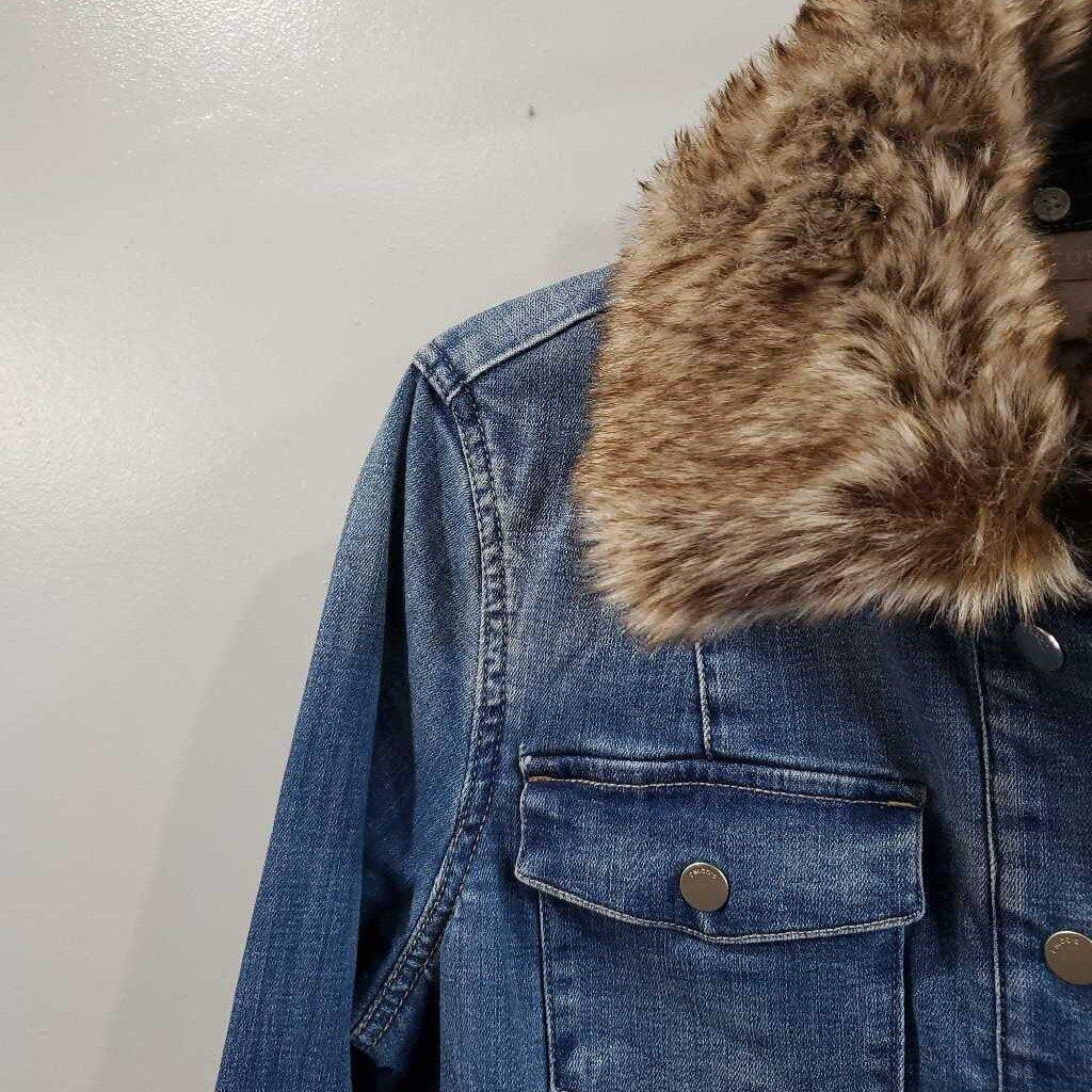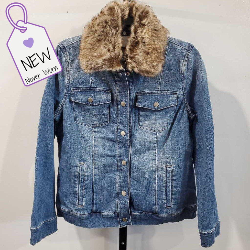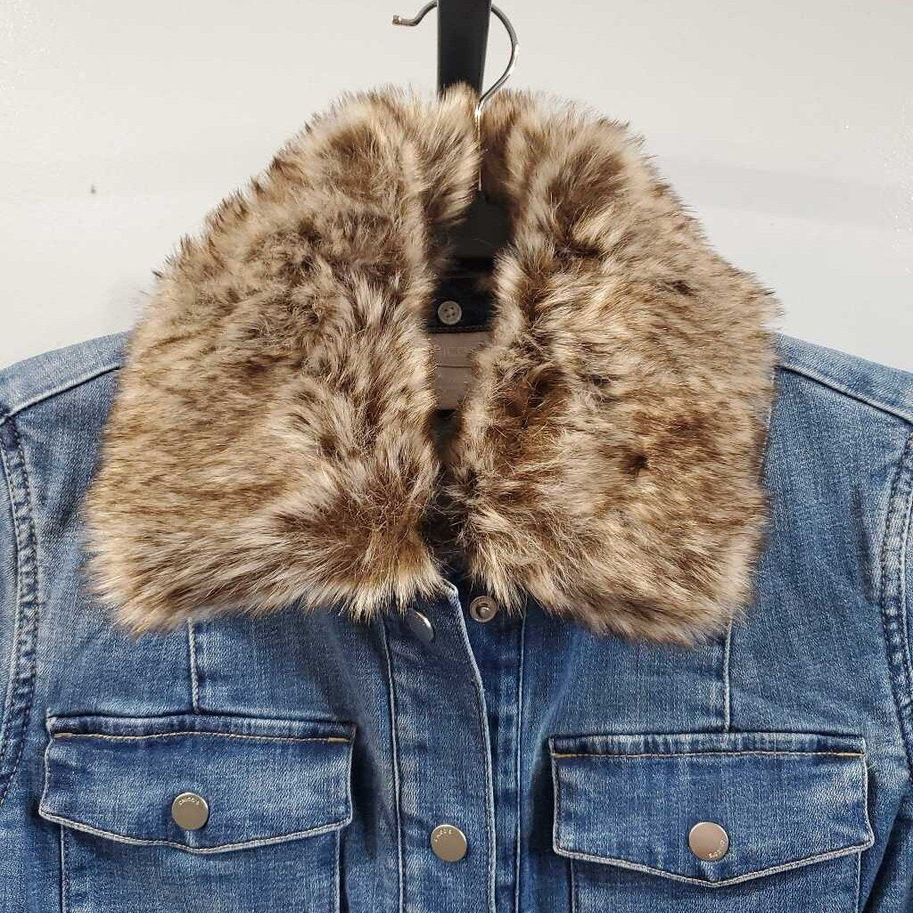 Long Sleeve Faux Fur Collar Denim Jacket NWT, Removeable Collar β