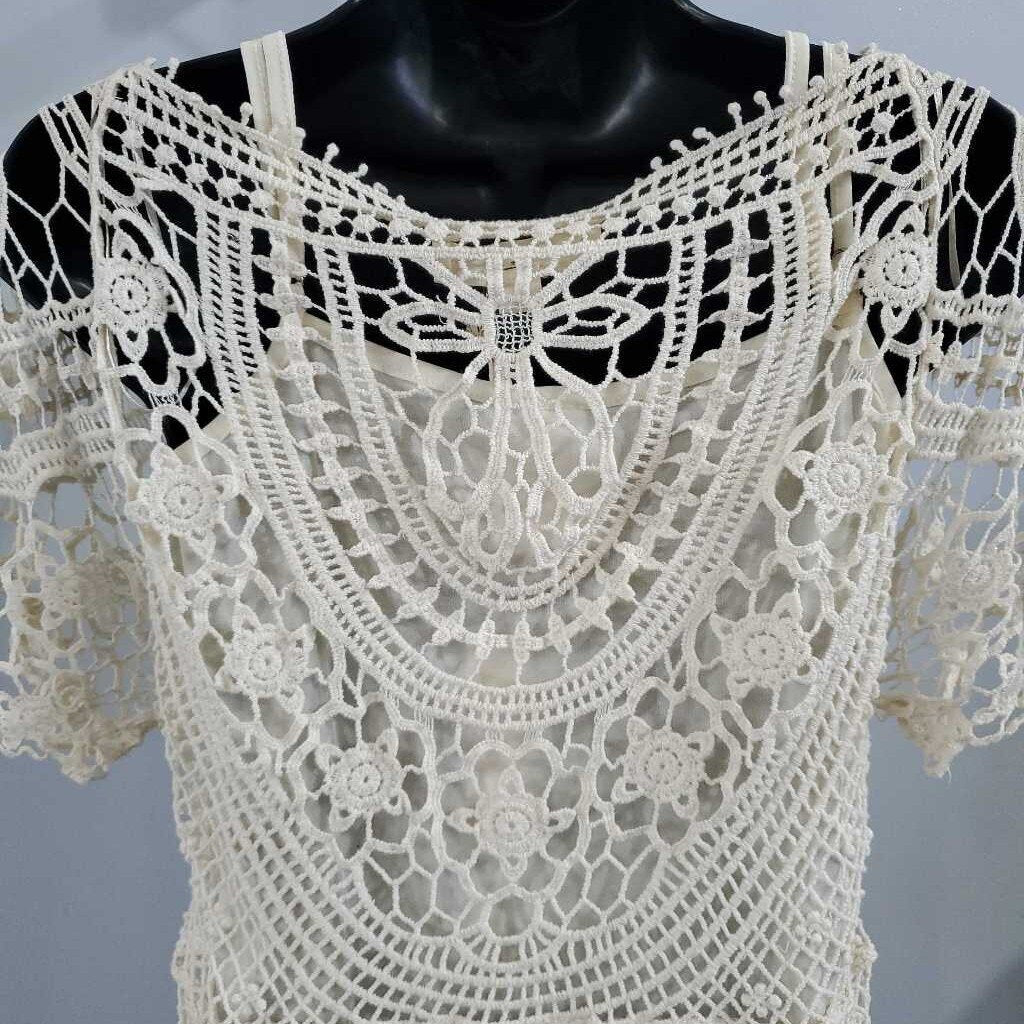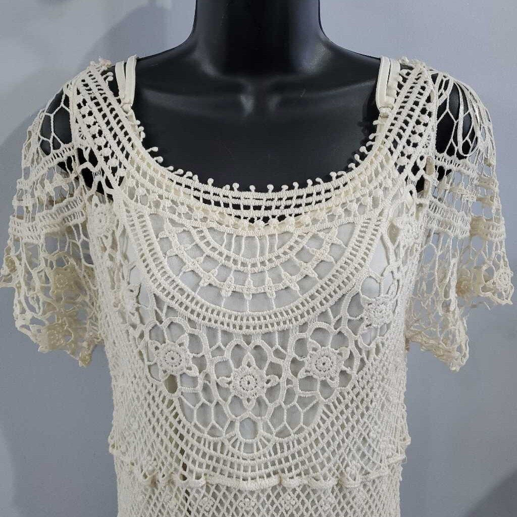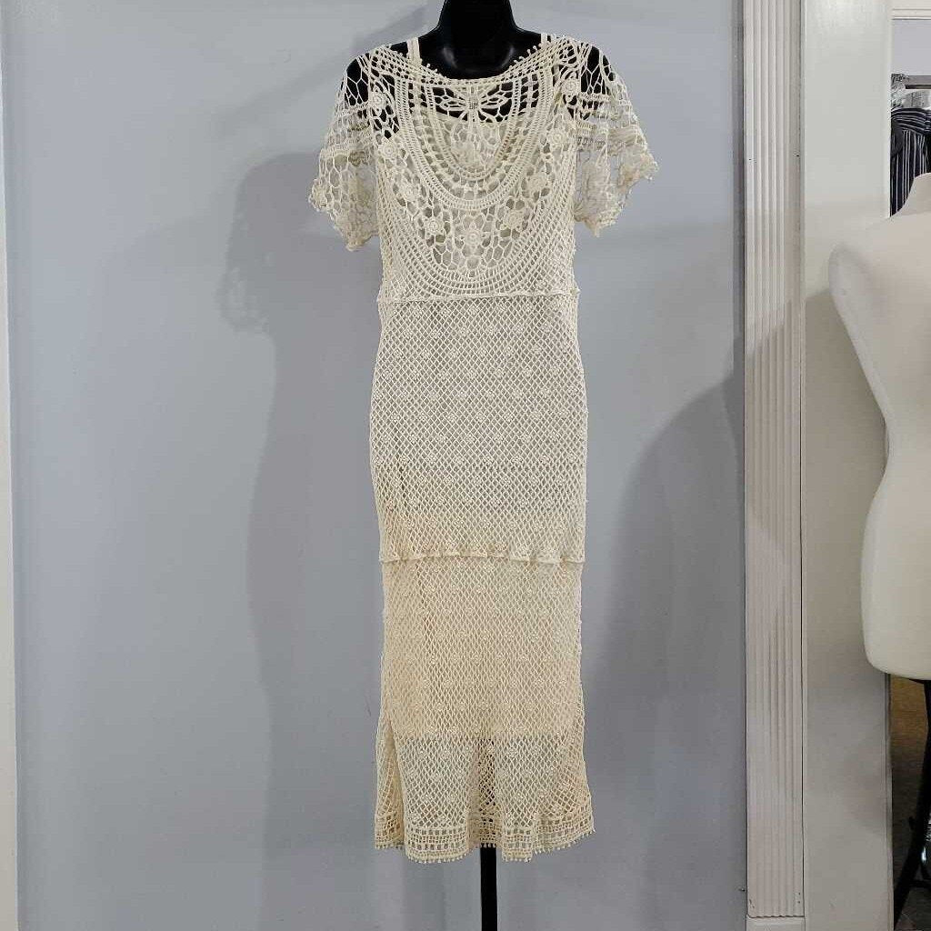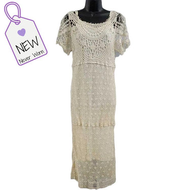 Short Sleeve Crochet Midi Dress NWT with full slip. β
