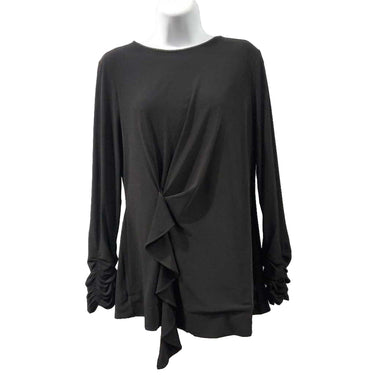 Long Sleeve Ruffled and Ruched Knit Top â