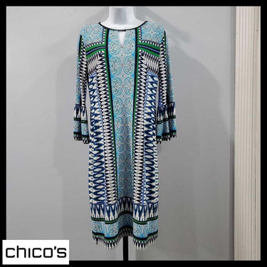 Long Sleeve Mixed Print Knit Dress, Chico's Size 0 β