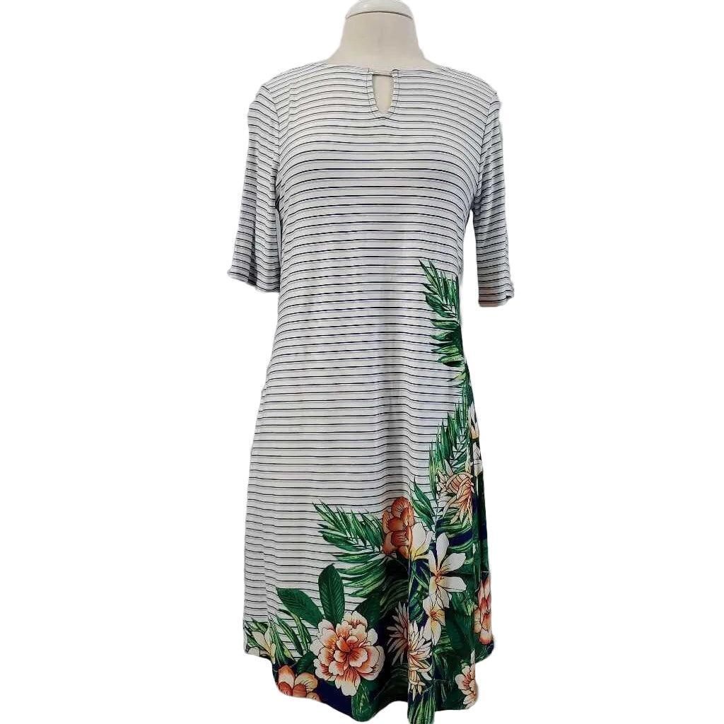 Short Sleeve Striped Floral Dress, Chico's Size 0 β