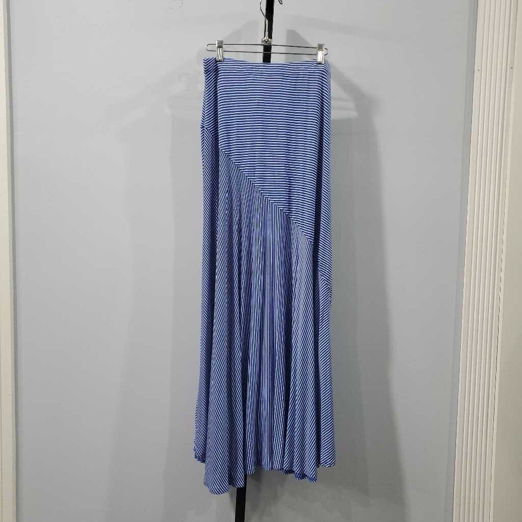 Elastic Waist Asymmetrical Striped Knit Maxi Skirt, Chico's Size 0 β