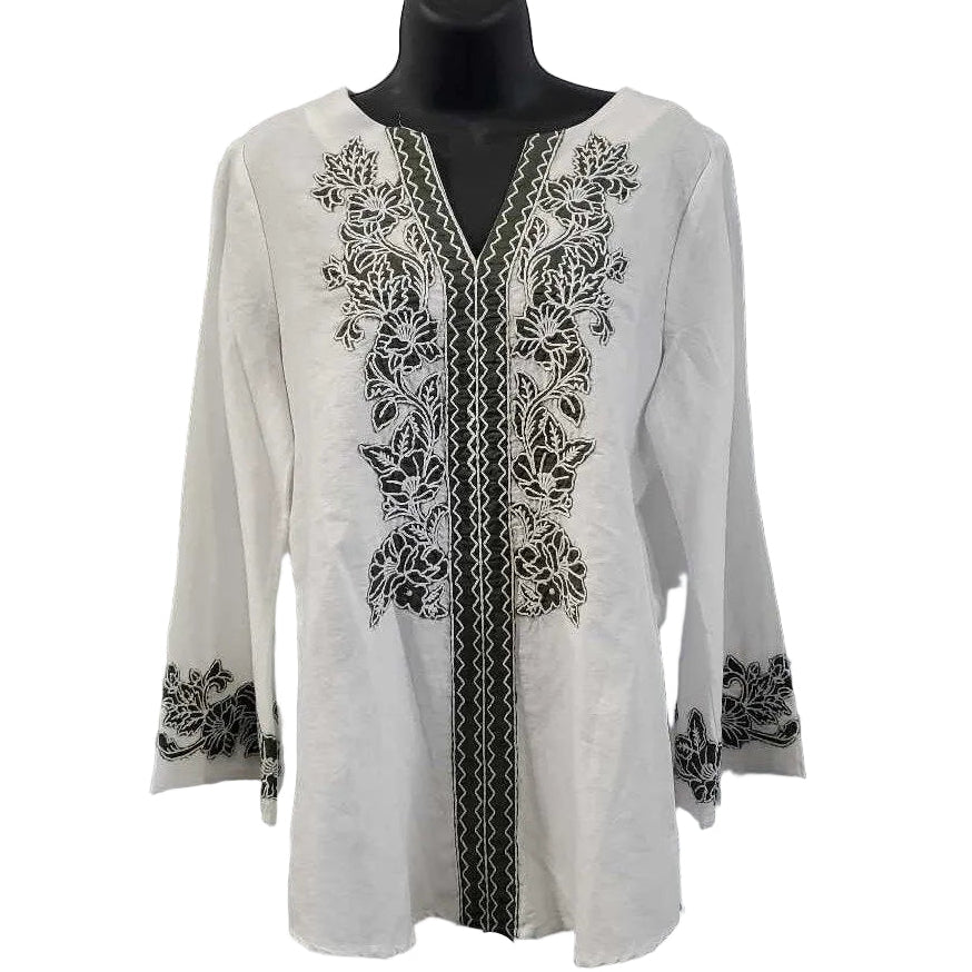 Long Sleeve Embroidered Tunic, Chico's Size 0 β