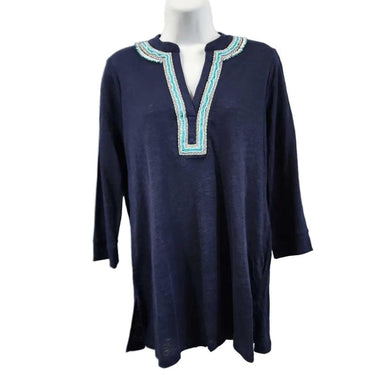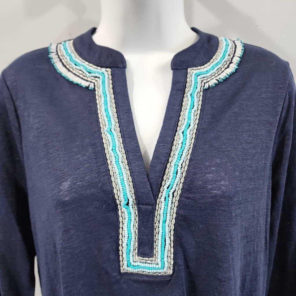 3/4 Sleeve Beaded Split Neck Top, Chico's Size 0 β