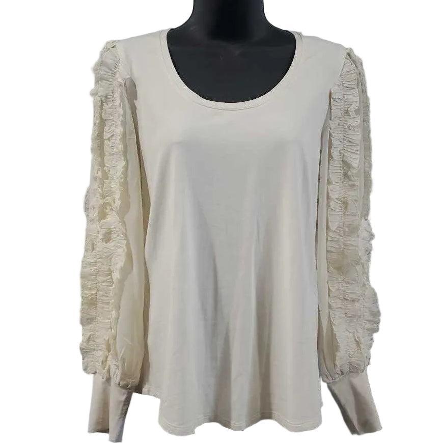 Long Sleeve Ruffle Accent Knit Top, Chico's Size 0 β