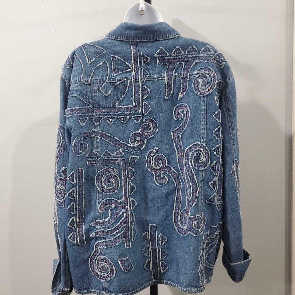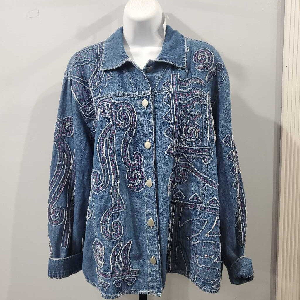 Vintage Long Sleeve Applique Denim Jacket, 100% Cotton