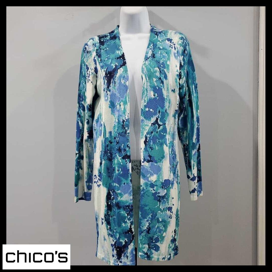Long Sleeve Abstract Print Knit Cardigan, Chico's Size 0 β