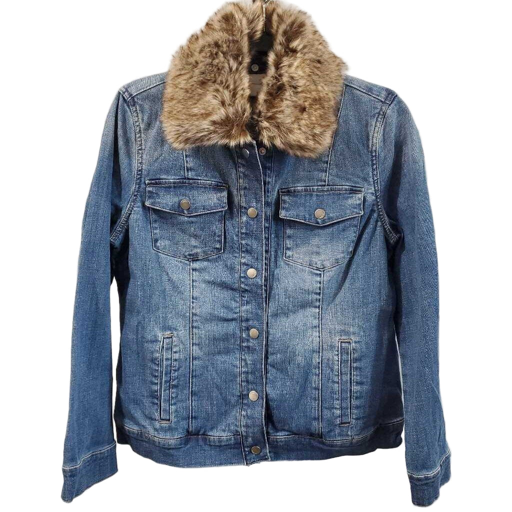 Long Sleeve Faux Fur Collar Denim Jacket NWT, Removeable Collar β