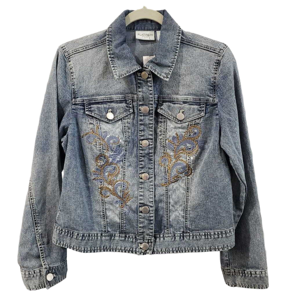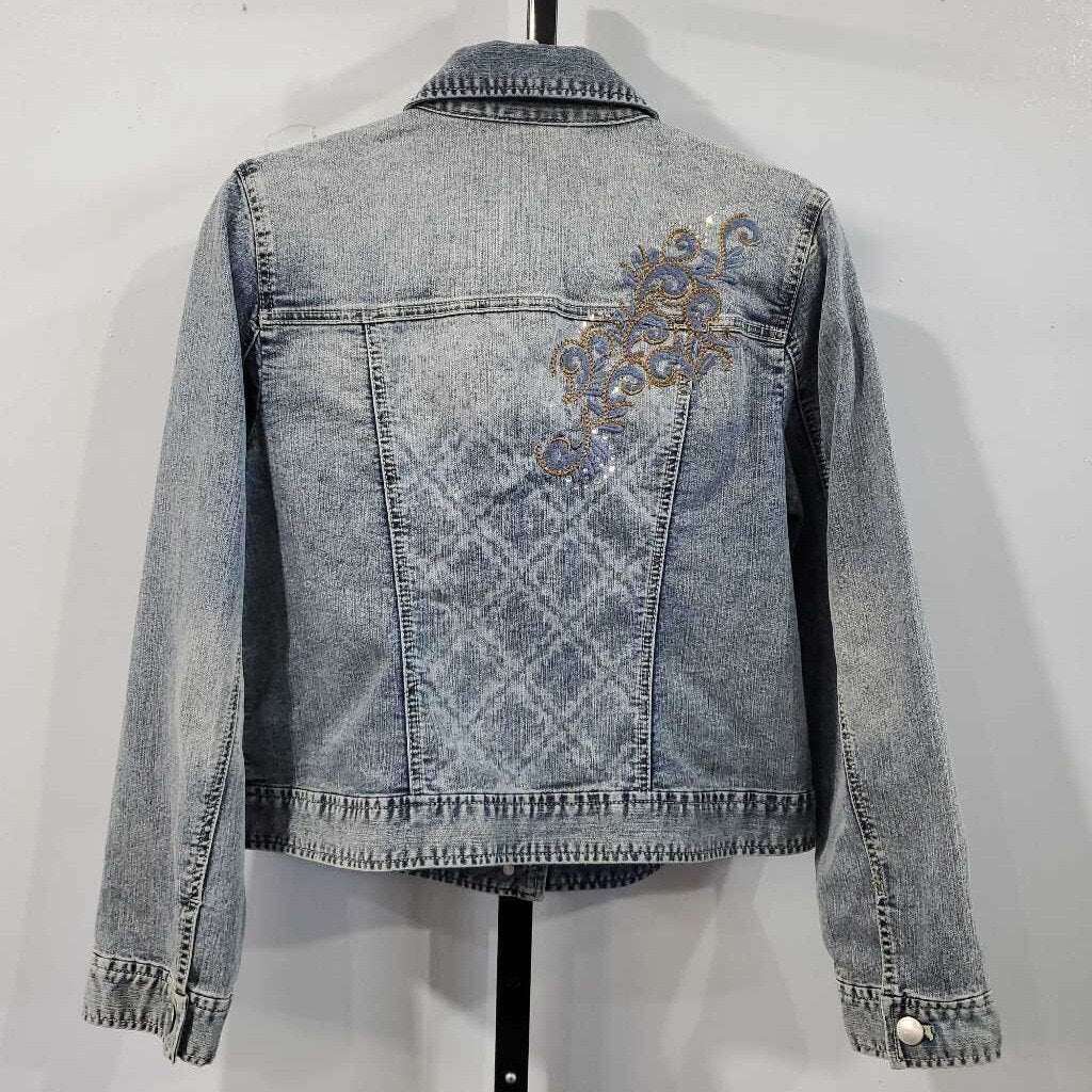 Long Sleeve Embroidered and Bedazzled Denim Jacket β