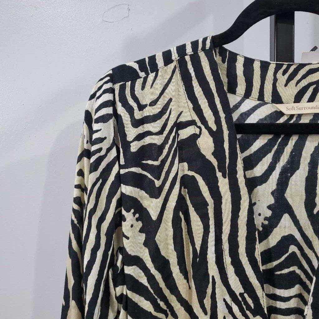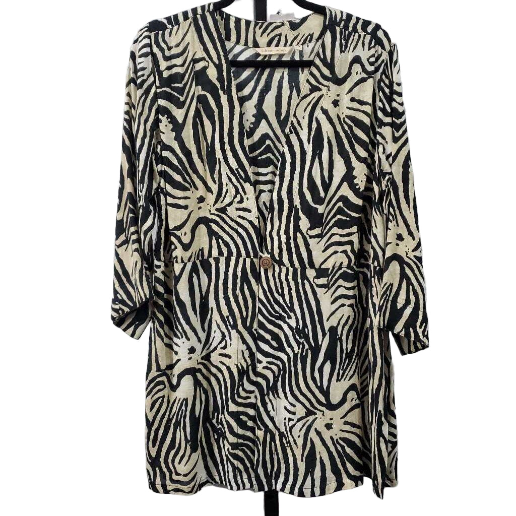 3/4 Sleeve 1 Button Cardigan, Black Tan Pattern β