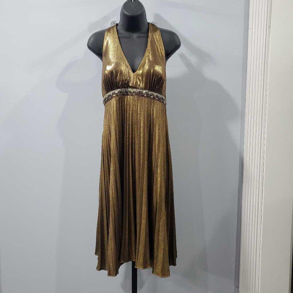 Halter Neck Beaded Pleated Metallic Party Dress ✅ Triple inspected for quality, condition & authenticity! 💯 Authenticity guaranteed or money back. ❓ Questions? Contact us. 📍 Ships from Enterprise, AL.